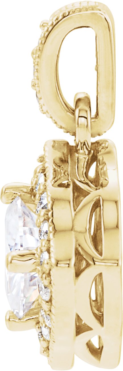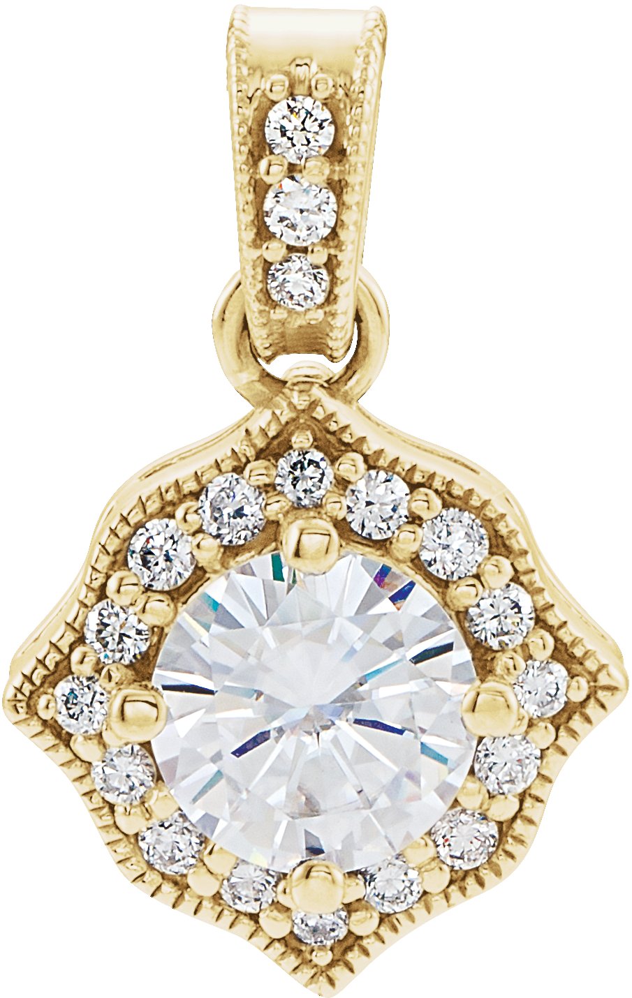 14K Yellow Forever One™ Moissanite & 1/6 CTW Diamond Pendant