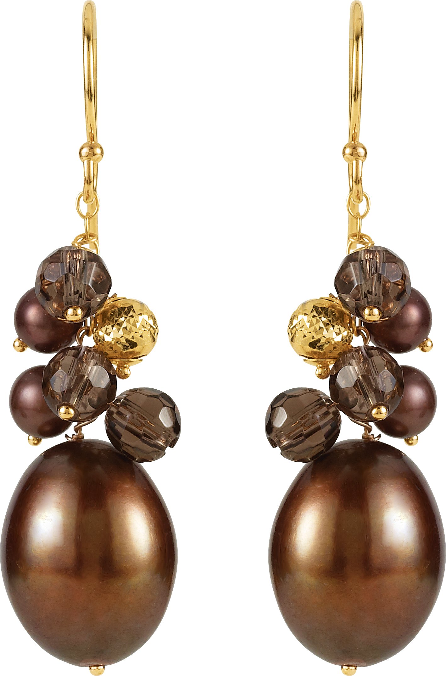 14K Yellow Freshwater Cultured Dyed Chocolate Pearl and Smoky Quartz Earrings