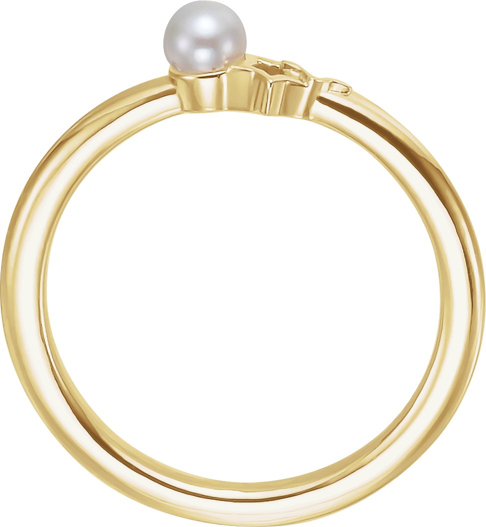 Description: White Freshwater Cultured Pearl Youth Double Star Ring