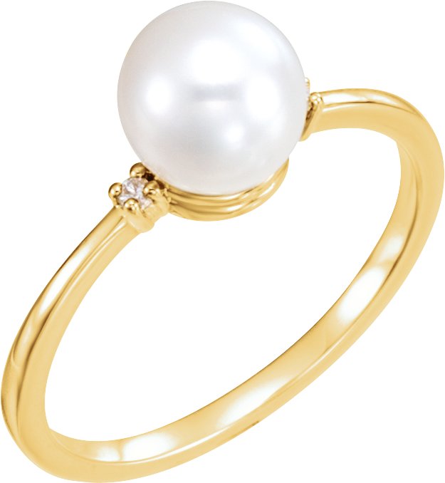 14K Yellow Freshwater Cultured Pearl & .025 CTW Diamond Ring