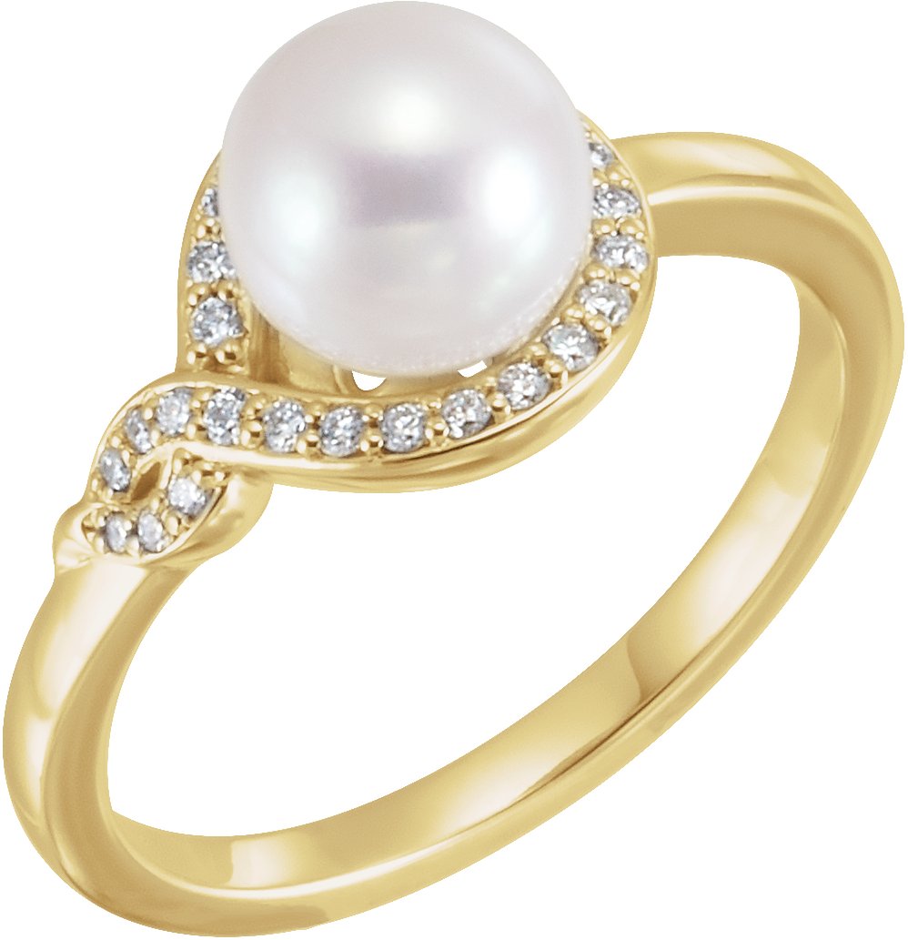 14K Yellow Freshwater Cultured Pearl & 1/8 CTW Diamond Bypass Ring