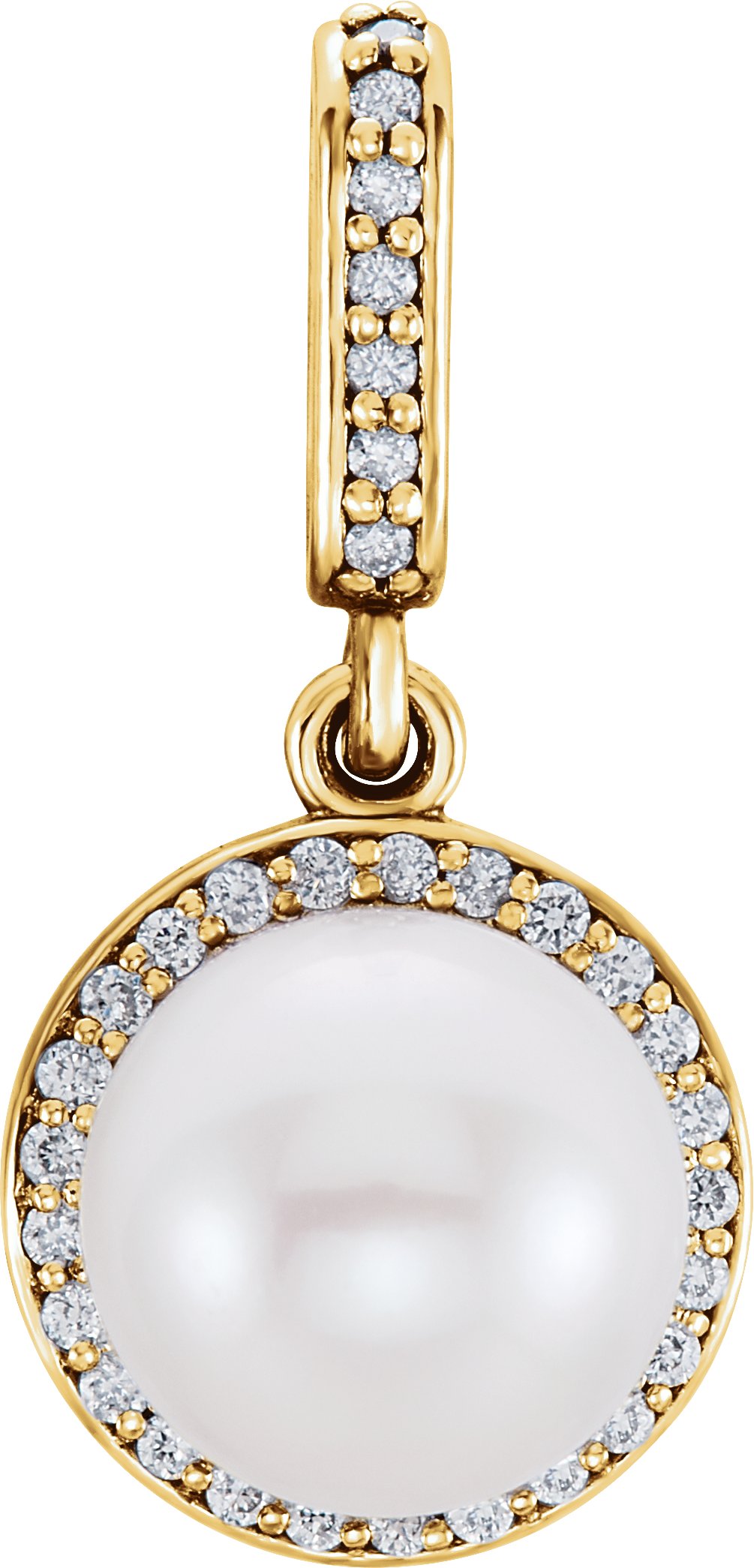 14K Yellow Freshwater Cultured Pearl & 1/8 CTW Diamond Pendant