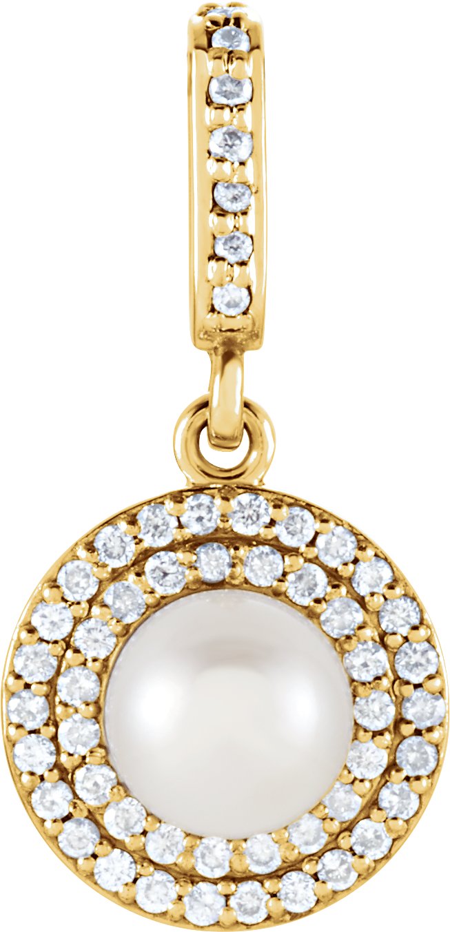 14K Yellow Freshwater Cultured Pearl & 1/8 CTW Diamond Pendant