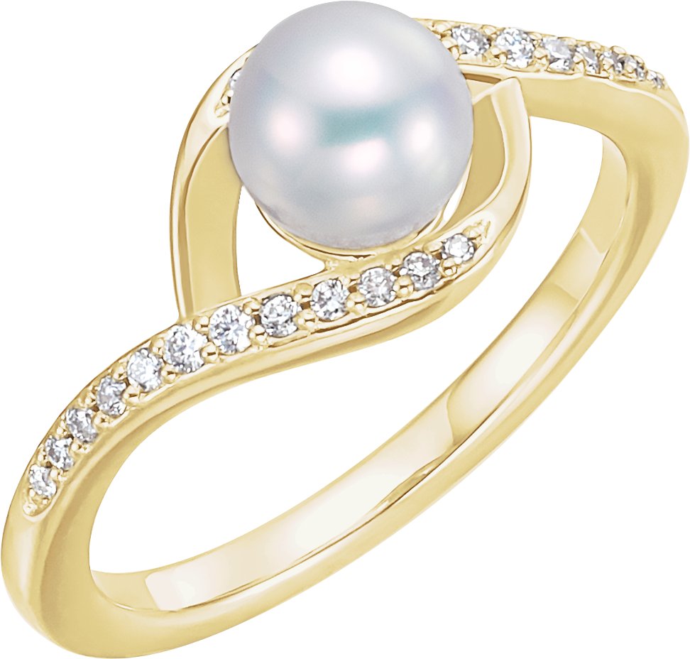 14K Yellow Freshwater Cultured Pearl & 1/8 CTW Diamond Ring