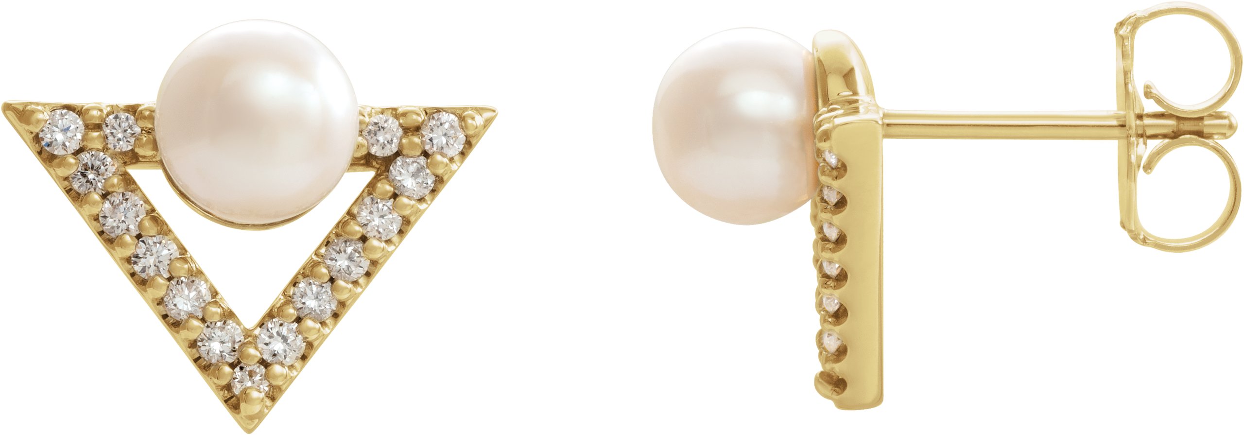 14K Yellow Freshwater Cultured Pearl & 1/5 CTW Diamond Earrings