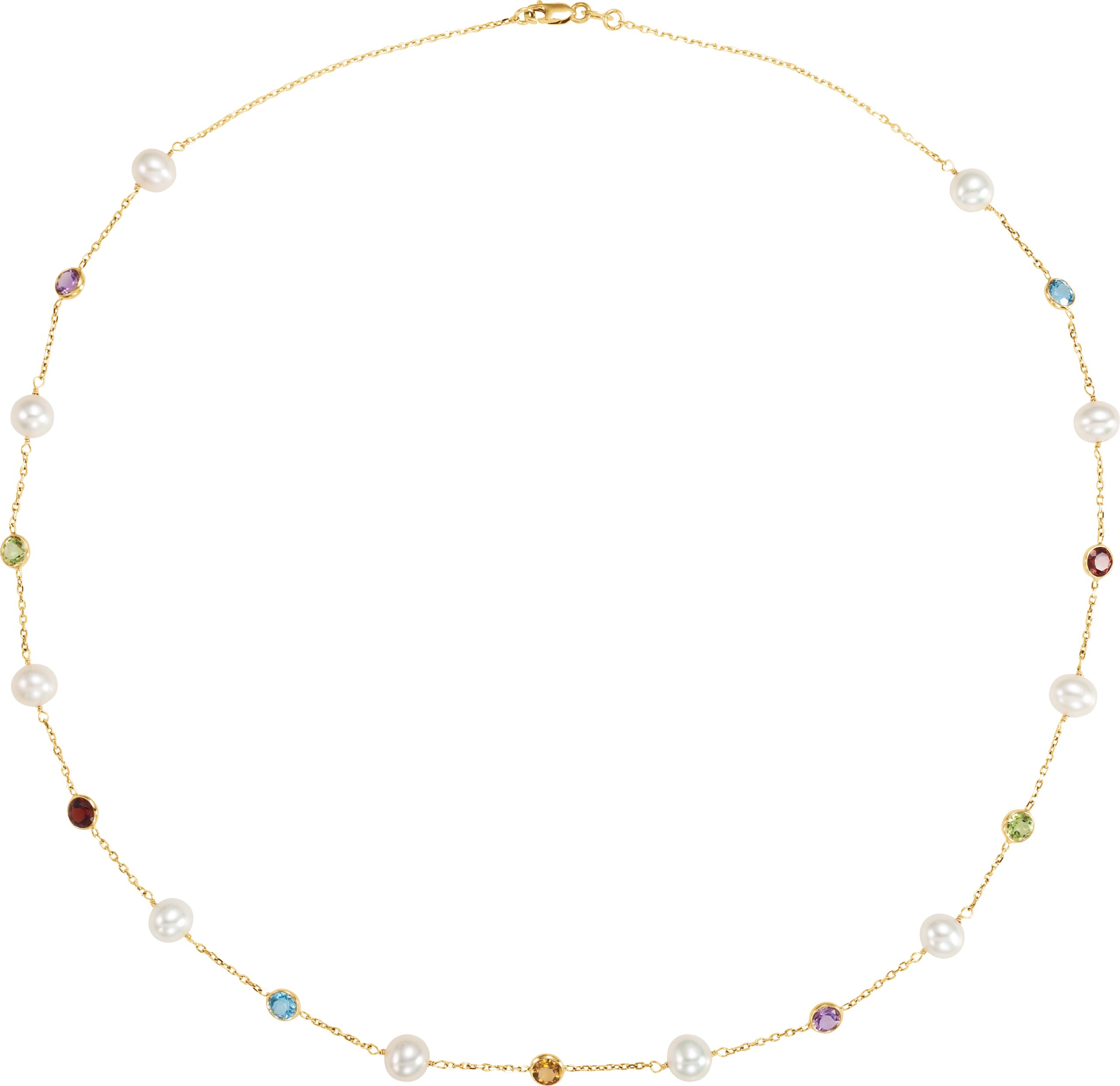14K Yellow Freshwater Cultured Pearl & Multi Gemstone Station 18 inch Necklace