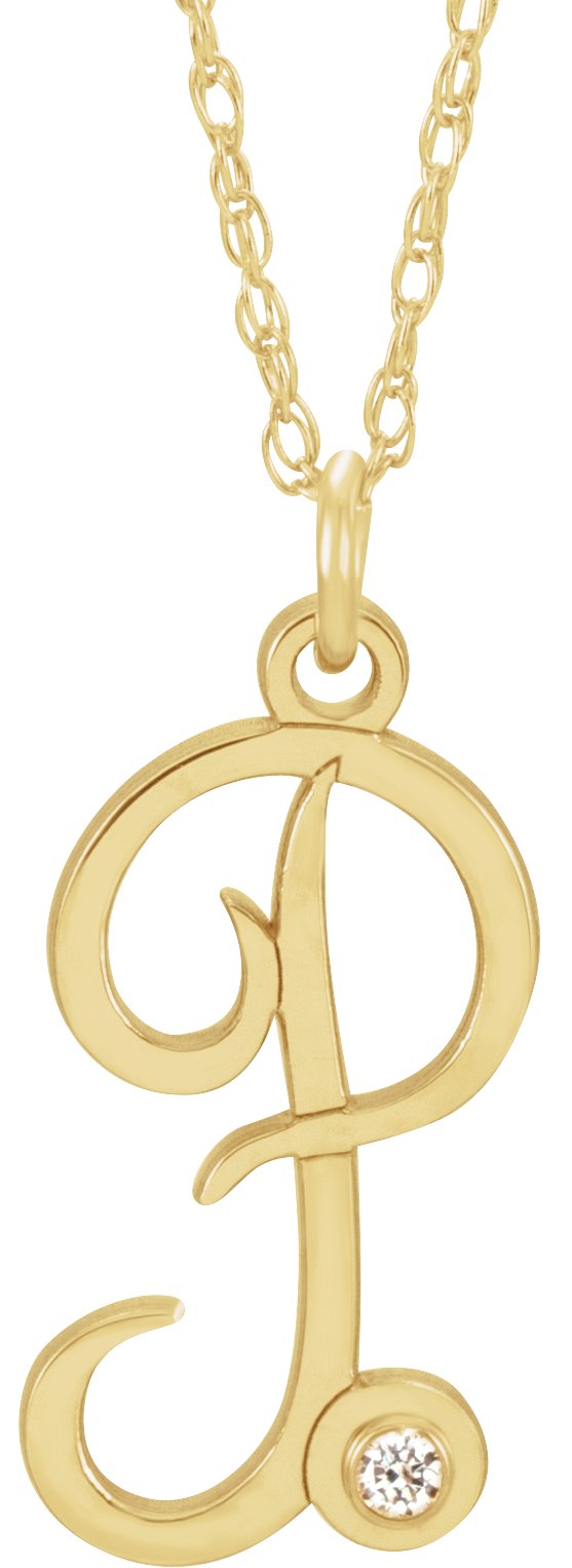 14K Yellow Gold Plated .02 CT Diamond Script Initial P 16 18" Necklace Ref. 16047633