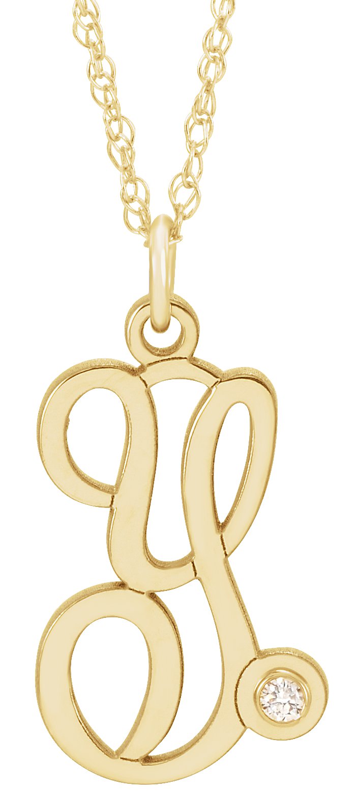 Description: .02 Ct Diamond Accented Script Initial Necklace