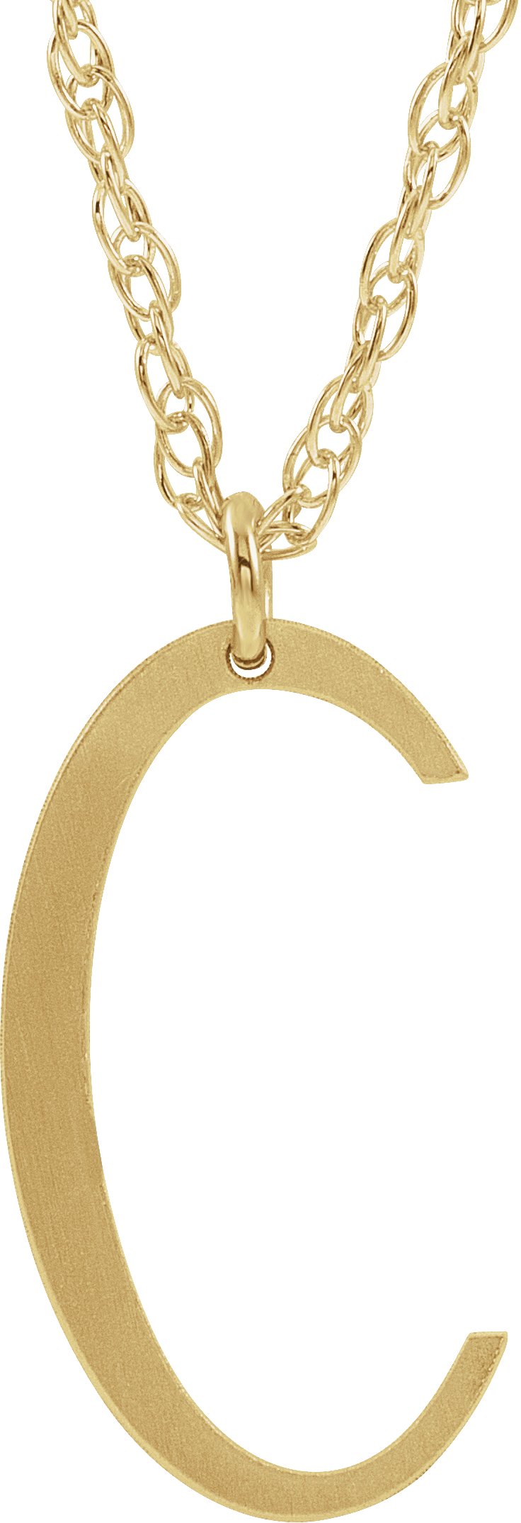 14K Yellow Gold Plated Sterling Silver Block Initial C 16 18" Necklace with Brush Finish Ref. 16047308