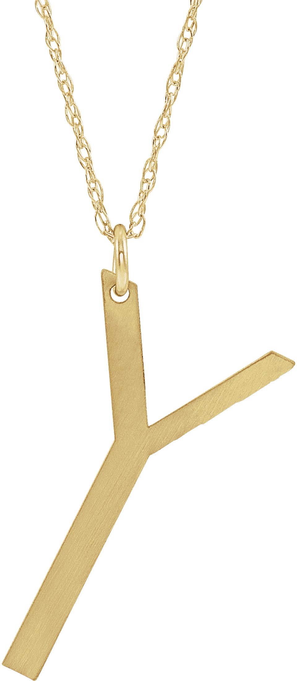 14K Yellow Gold Plated Sterling Silver Block Initial Y 16 18" Necklace with Brush Finish Ref. 16047330