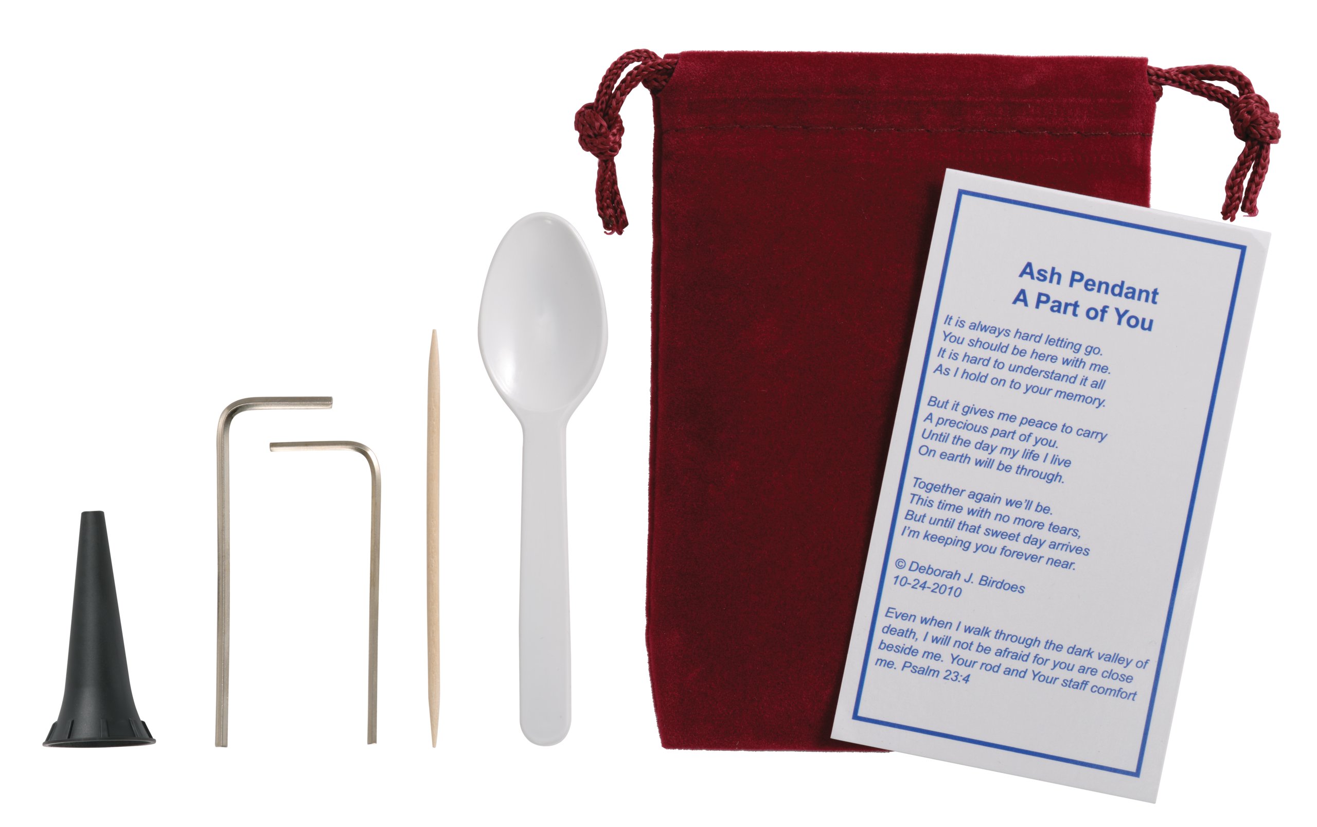 How to fill ash holder jewelry: Using the tools in the accessory kit provided, you can use the funnel and spoon to carefully guide ashes, sand or other sentimental material through the neck of the funnel, inside of the ash holder pendant.