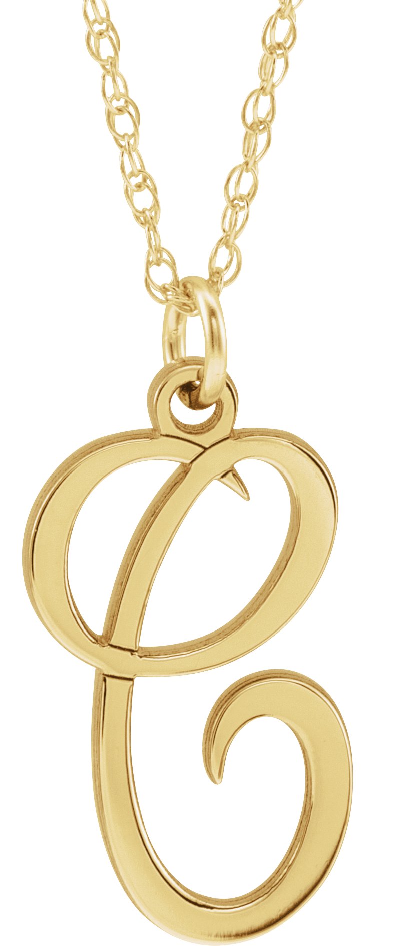 14K Yellow Gold Plated Sterling Silver Script Initial C 16 18" Necklace Ref. 16047152