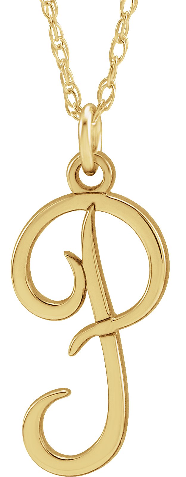 14K Yellow Gold Plated Sterling Silver Script Initial P 16 18" Necklace Ref. 16047165