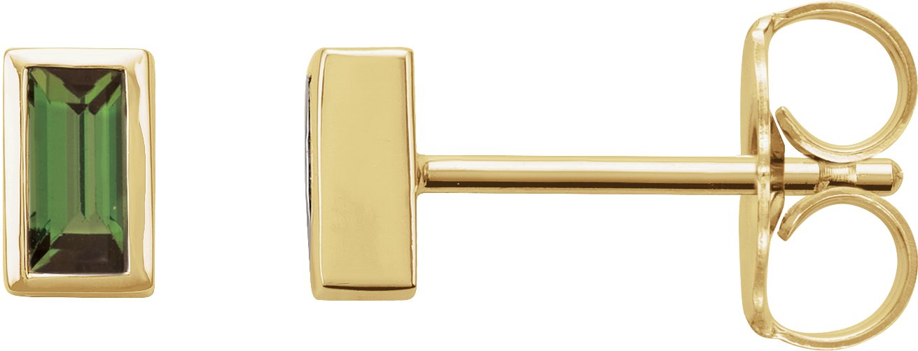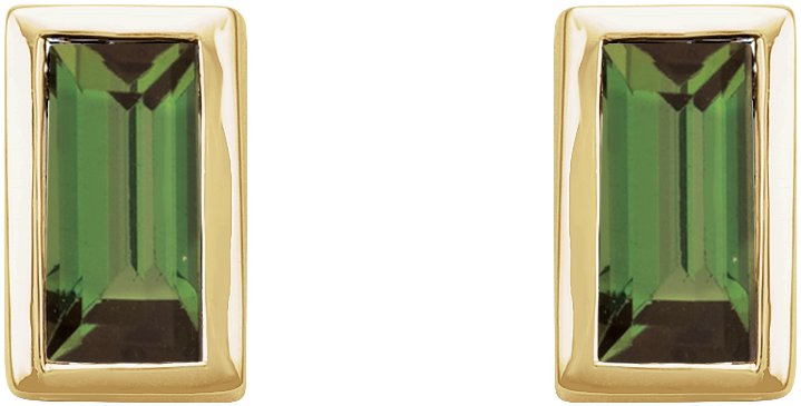 Description: Natural Green Tourmaline Bezel-Set Earrings