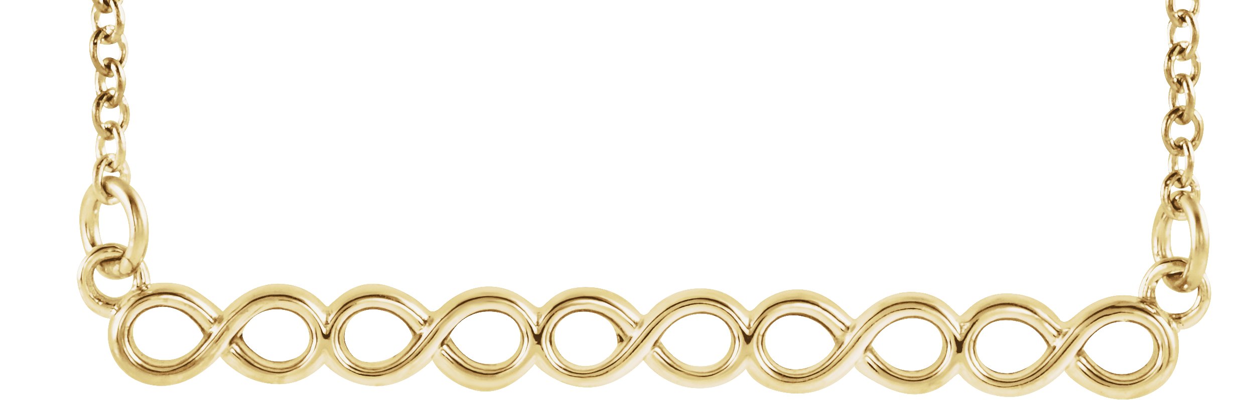Description: Infinity Inspired 16-18 Inch Bar Necklace