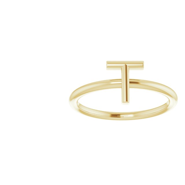 14K Yellow Initial T Ring