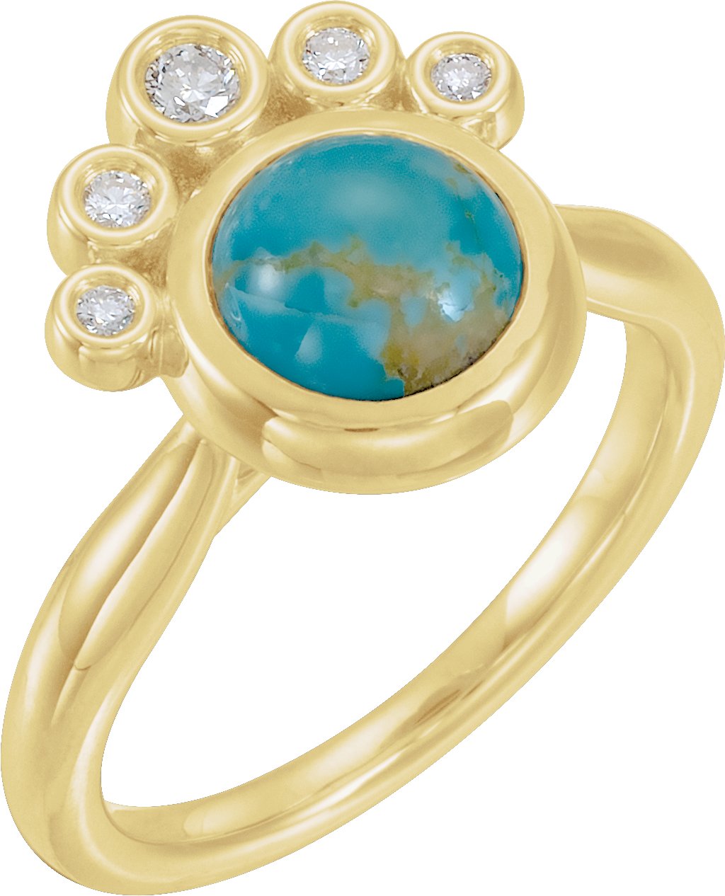 14K Yellow Kingman Turquoise & 1/8 CTW Diamond Ring