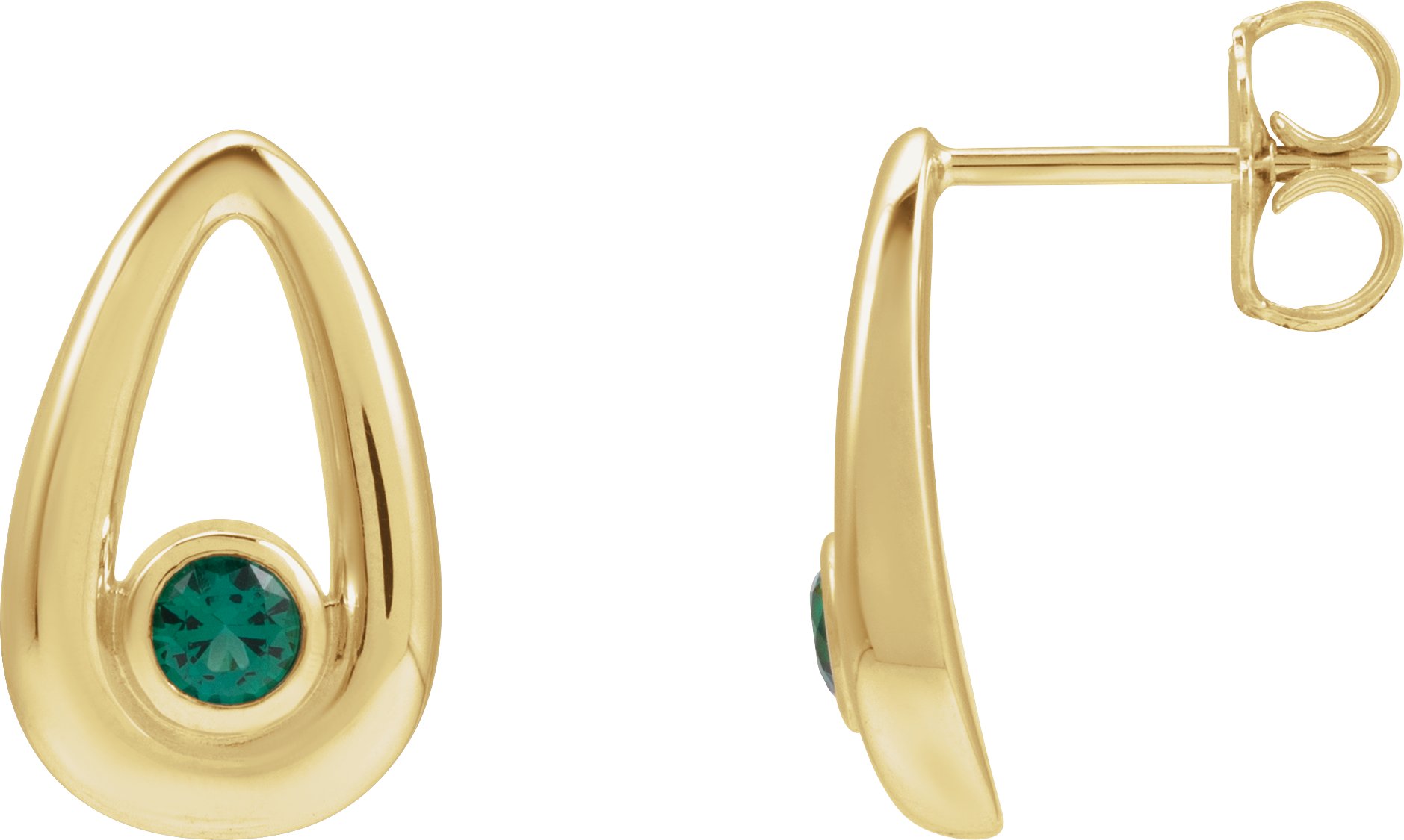 14K Yellow Lab-Grown Emerald Geometric Earrings