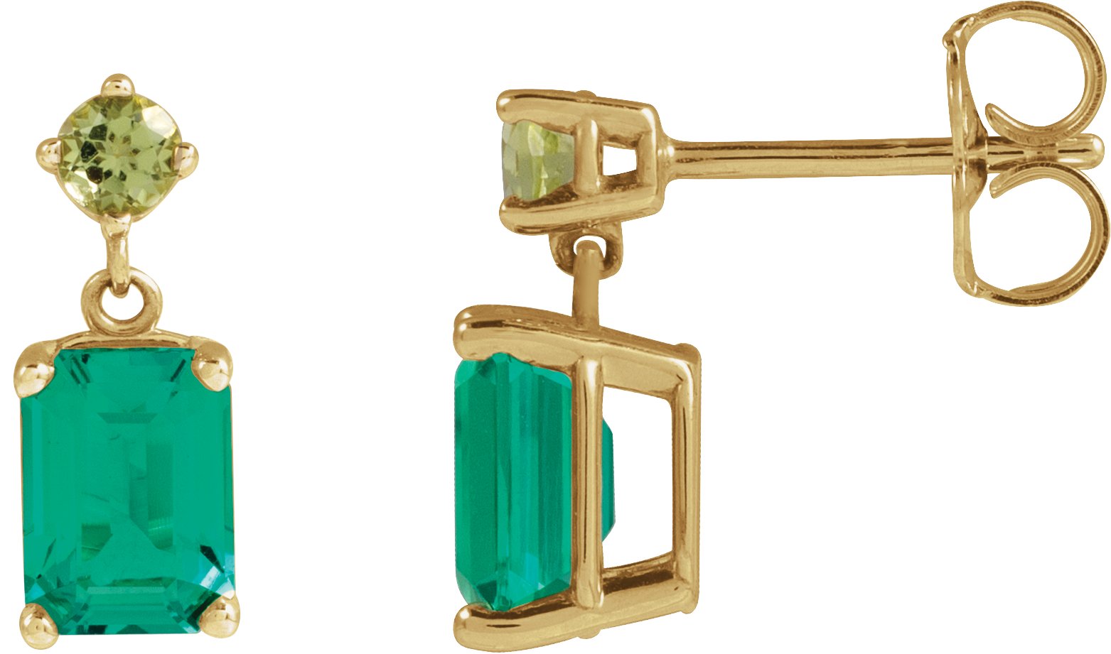 Description: Lab-Grown Emerald And Natural Peridot Dangle Earrings