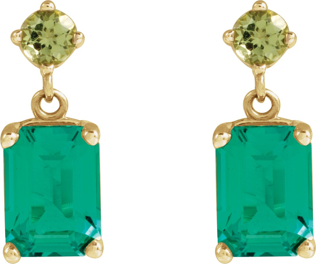 14K Yellow Lab-Grown Emerald & Natural Peridot Dangle Earrings