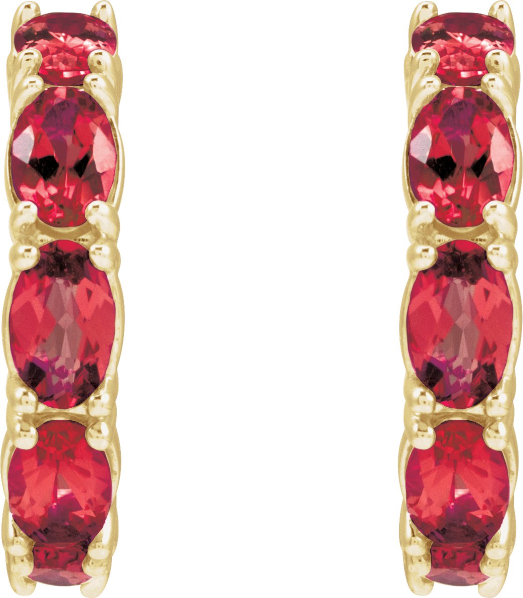 14K Yellow Lab-Grown Ruby Hoop Earrings