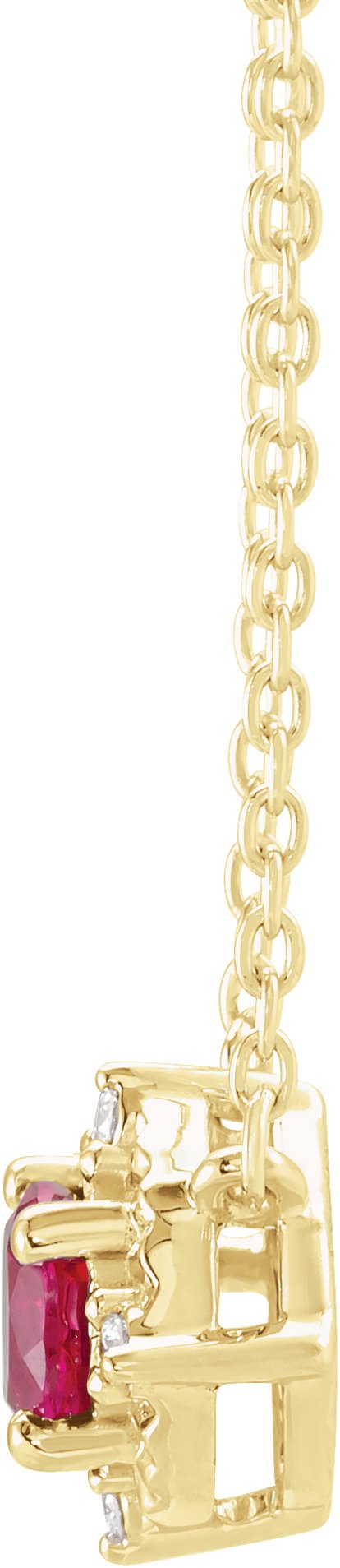 14K Yellow Lab Grown Ruby and .04 CTW Natural Diamond Halo Style 18 inch Necklace Ref 17917661