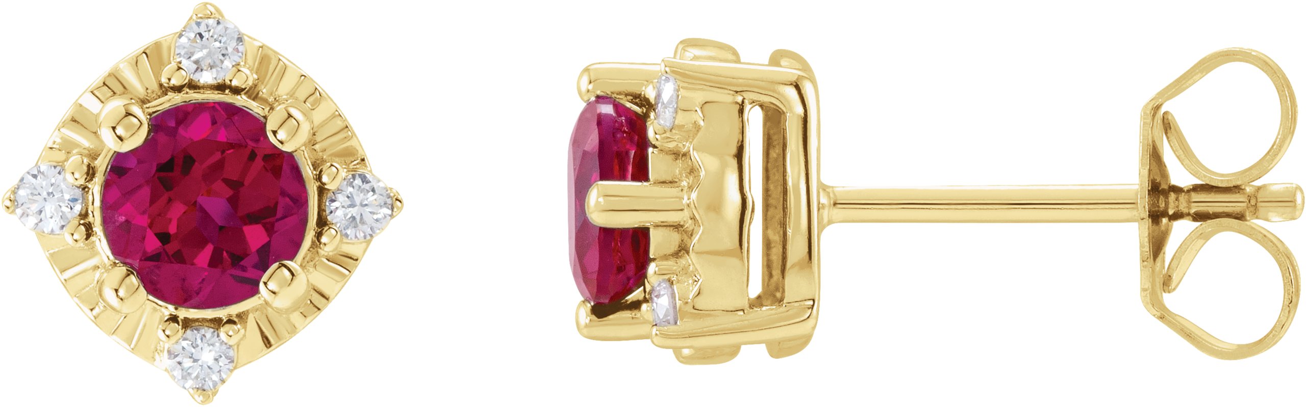 Description: Lab-Grown Ruby And .08 CTW Natural Diamond Earrings