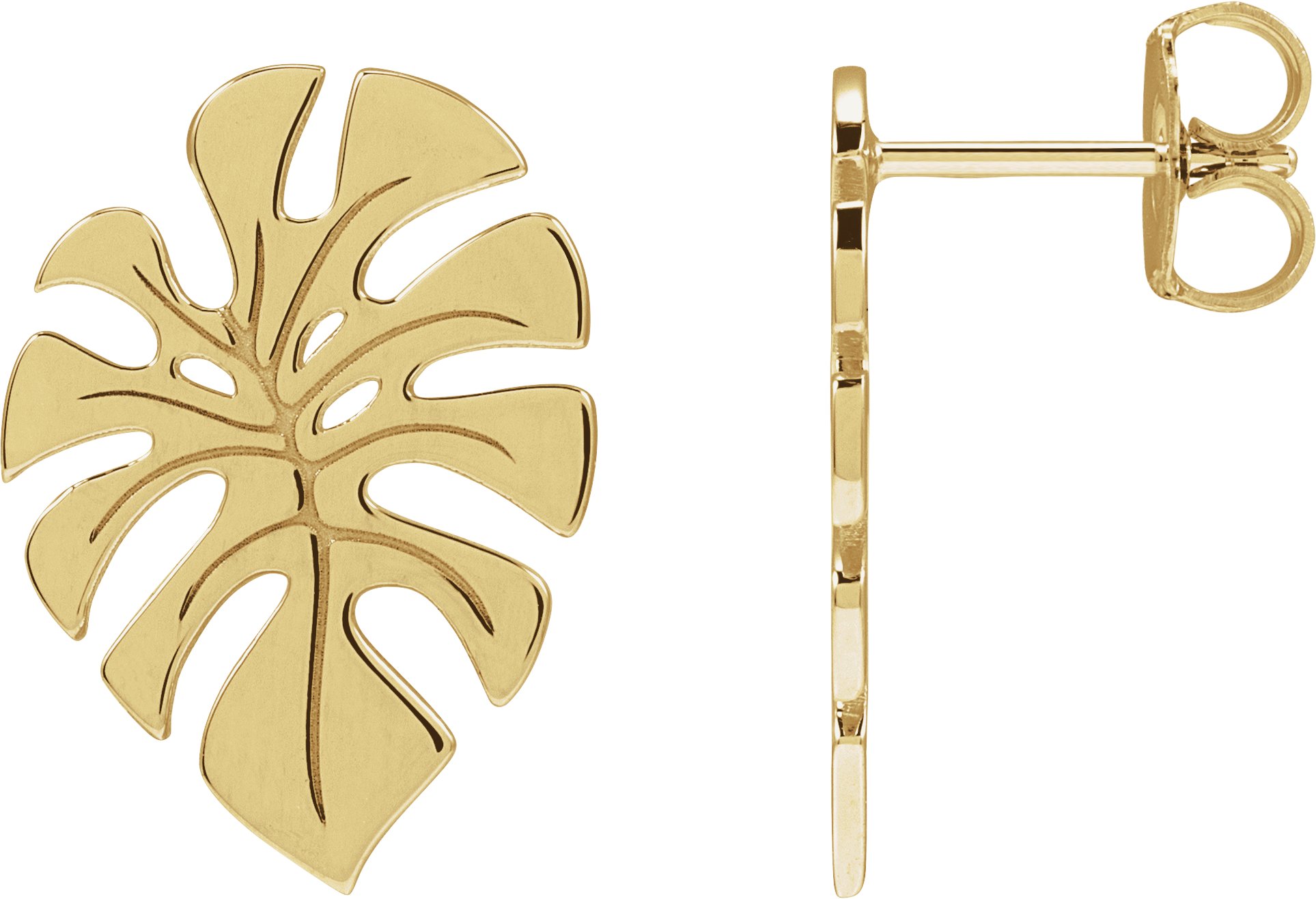 14K Yellow Left Monstera Leaf Stud Earring