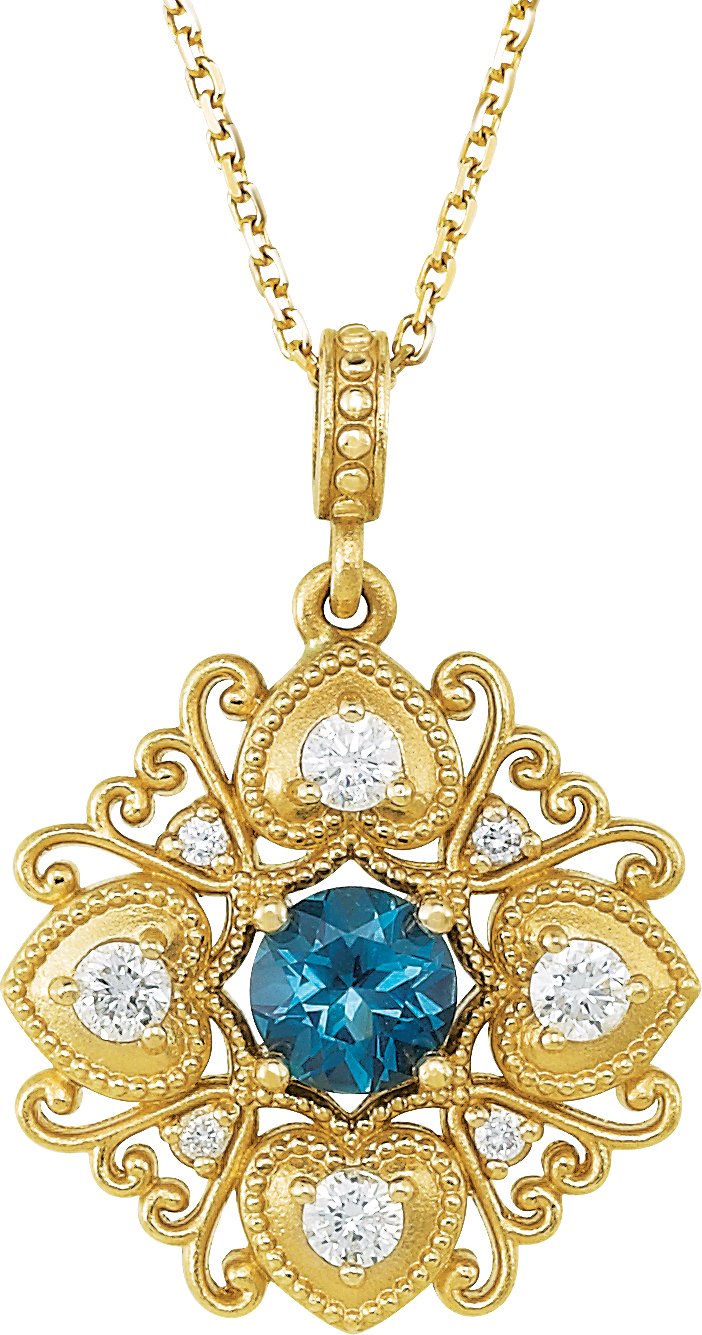 14K Yellow London Blue Topaz & 1/4 CTW Diamond 18" Necklace Ref. 3417560