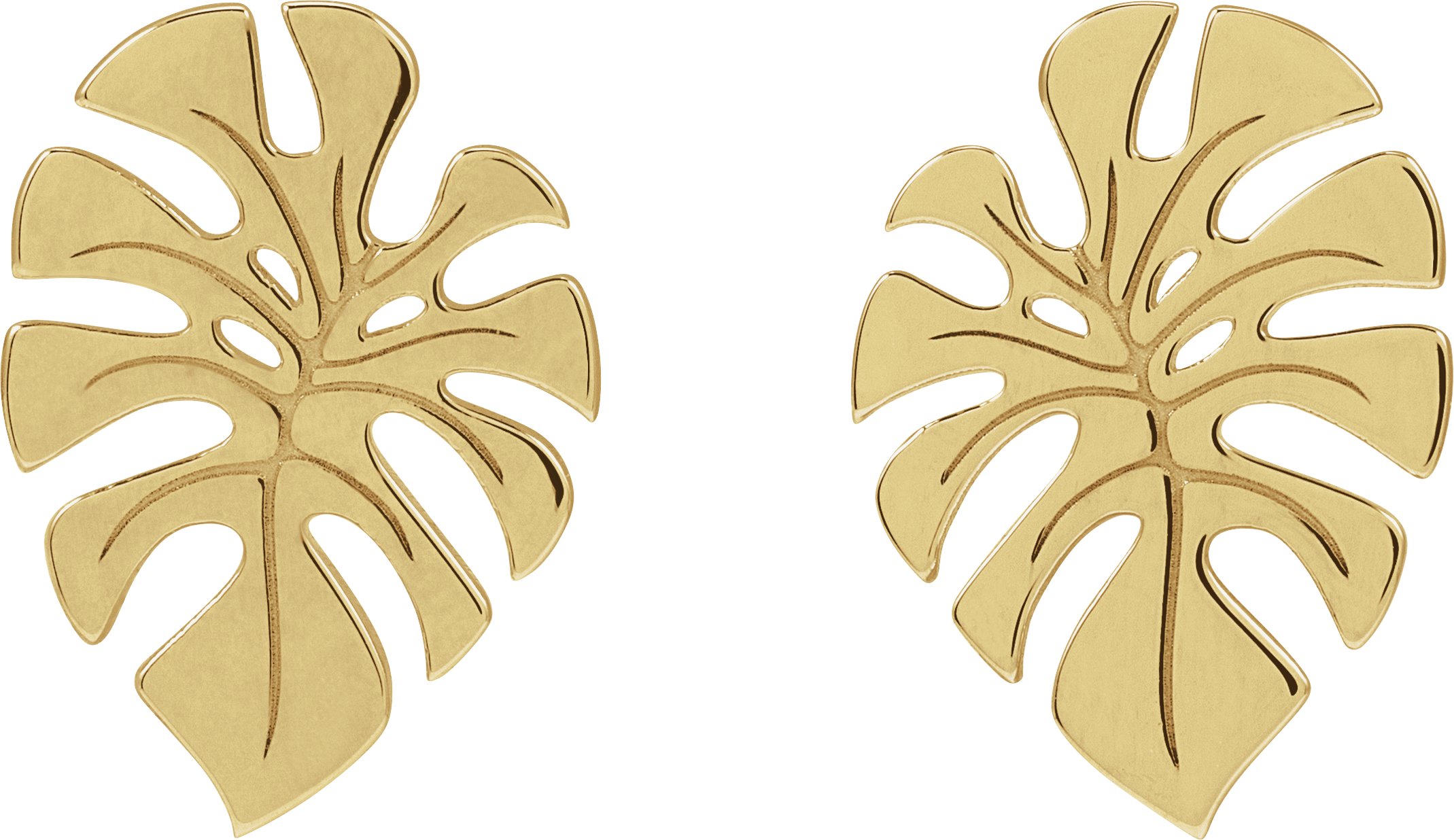 14K Yellow Monstera Leaf Stud Earrings