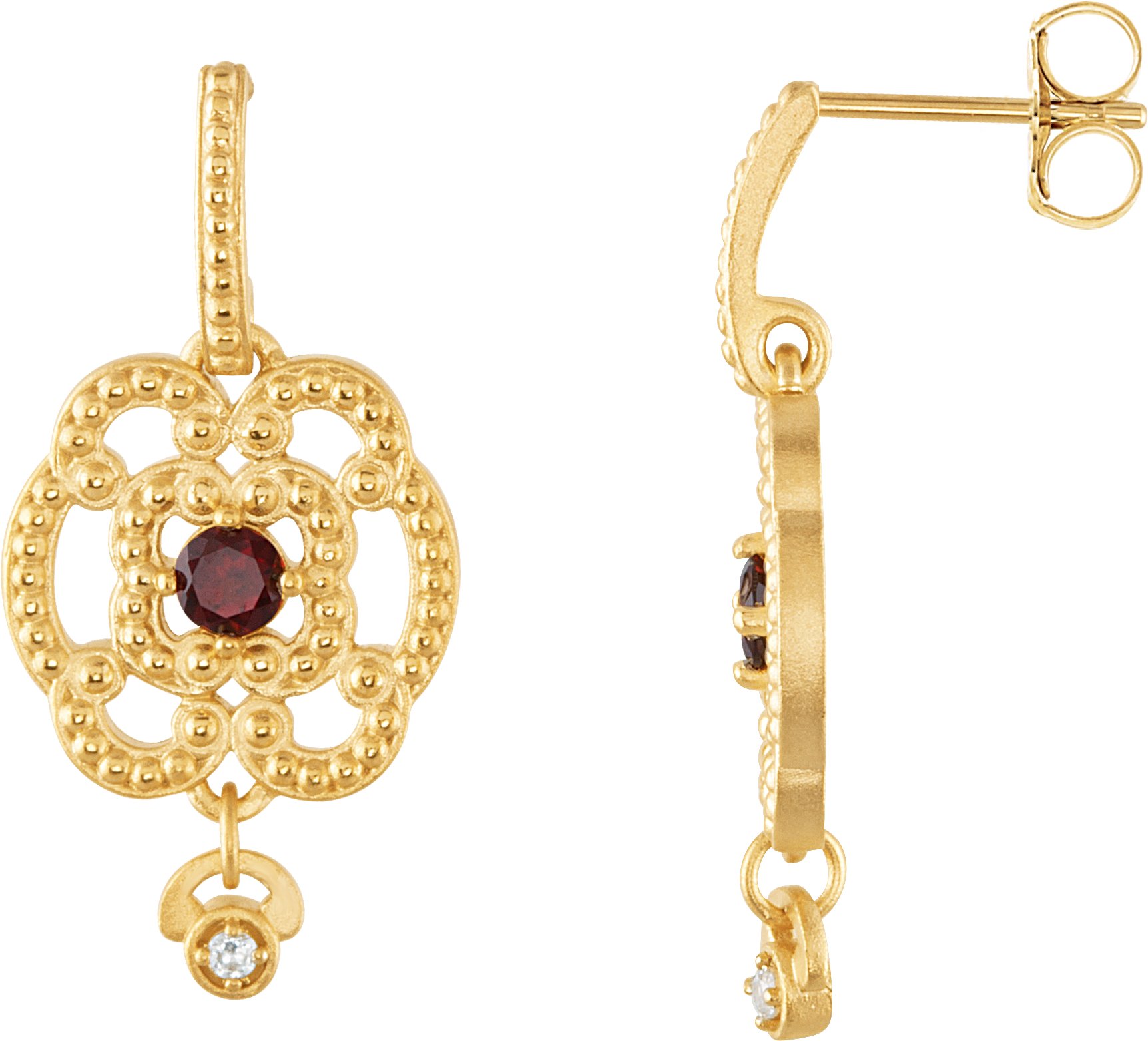 Description: Genuine Mozambique Garnet And .03 CTW Diamond Earrings