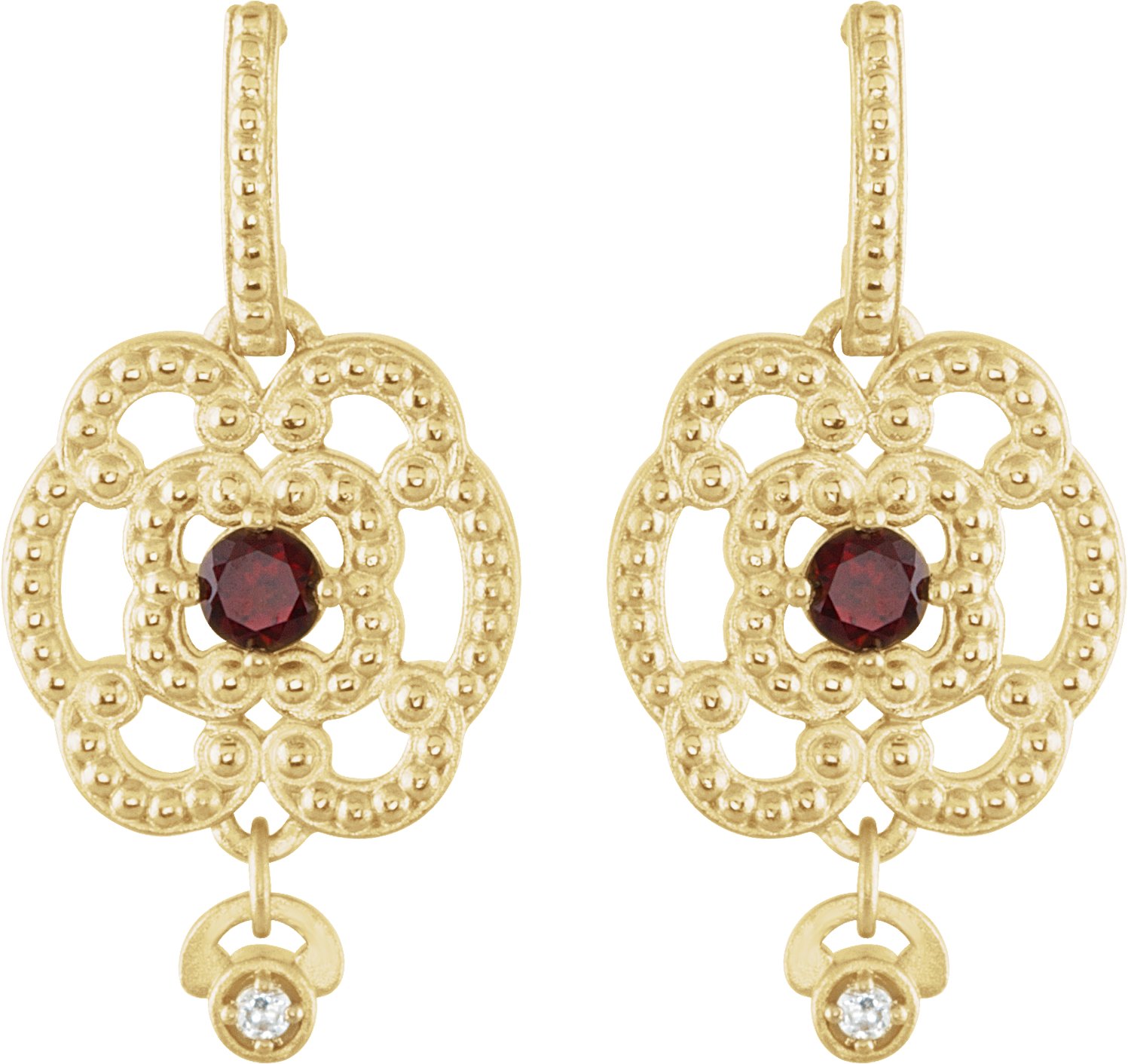 14K Yellow Mozambique Garnet and .03 CTW Diamond Earrings