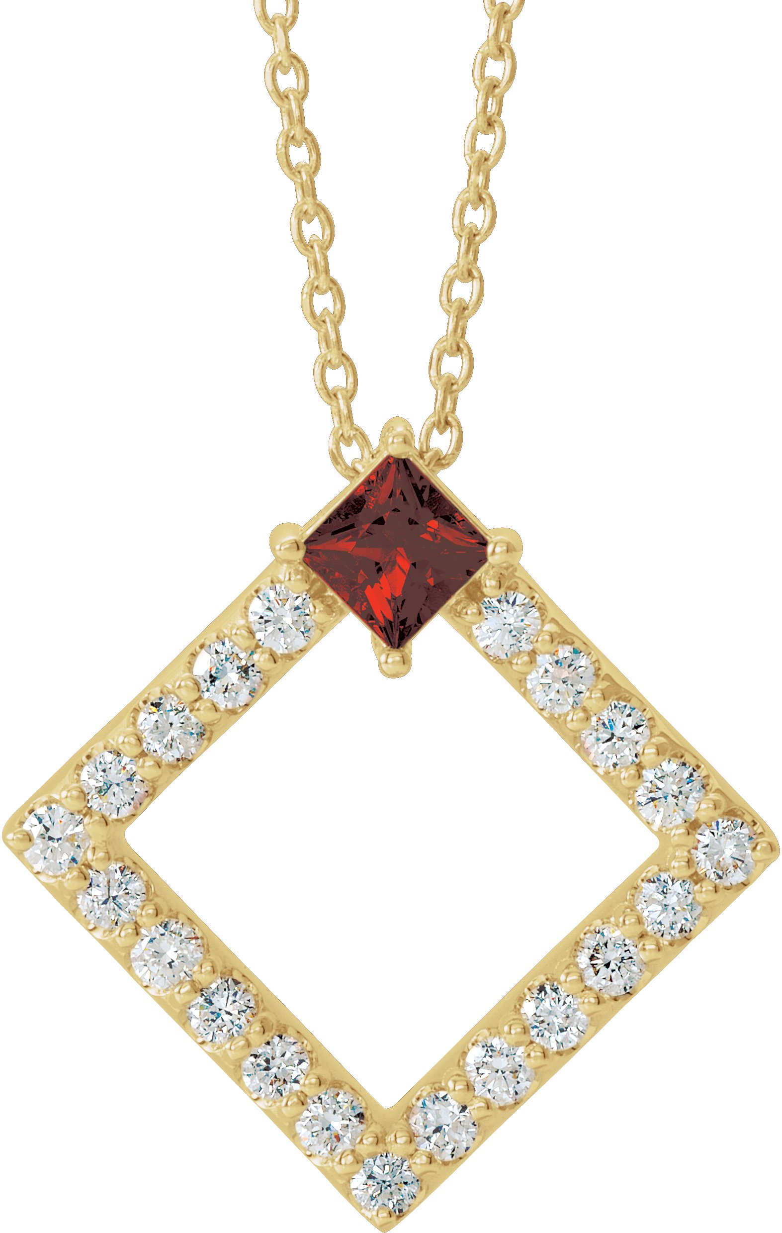 14K Yellow Mozambique Garnet and .375 CTW Diamond 16 18 inch Necklace