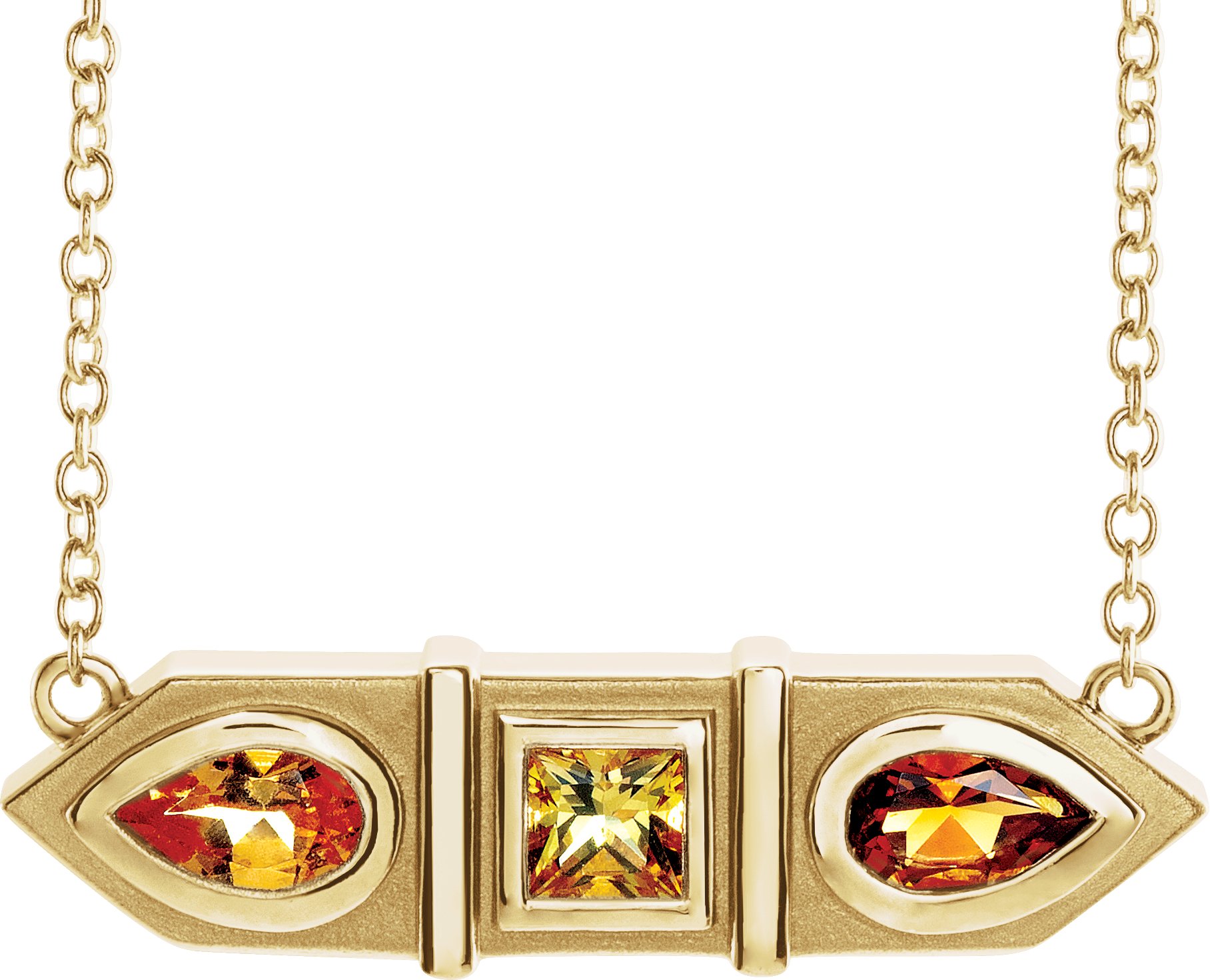 Finished State: PolishedDescription: Genuine Orange And Yellow Multi-Gemstone Geometric Bar Necklace