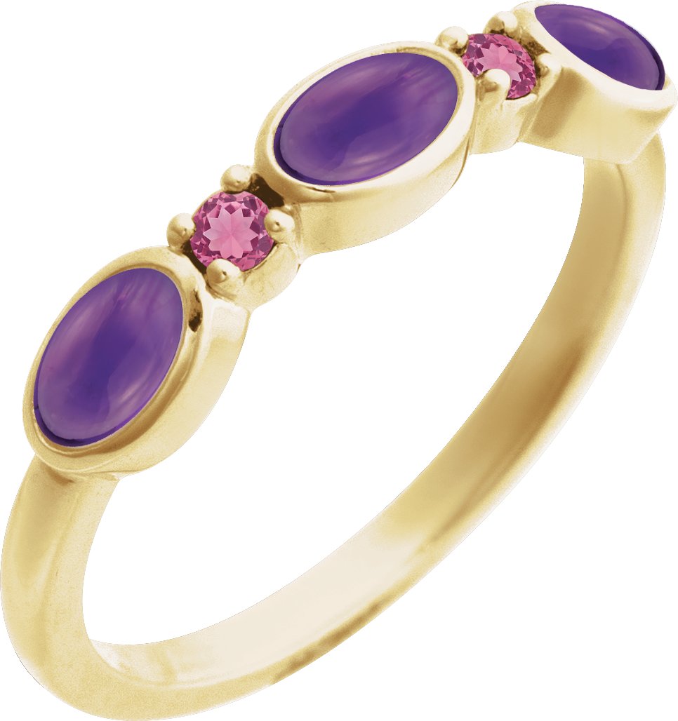 14K Yellow Natural Amethyst & Natural Pink Tourmaline Stackable Ring