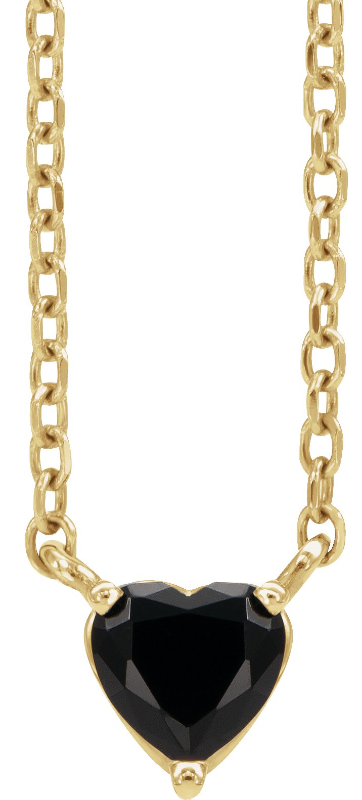 14K Yellow Natural Black Onyx Heart 16 to 18 inch Necklace Ref 19139392