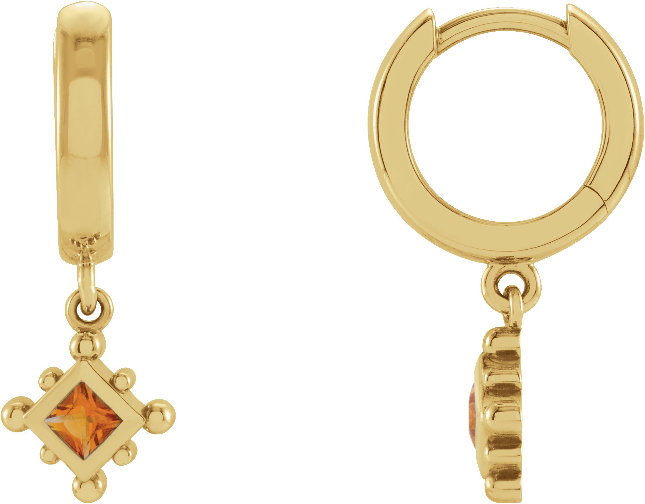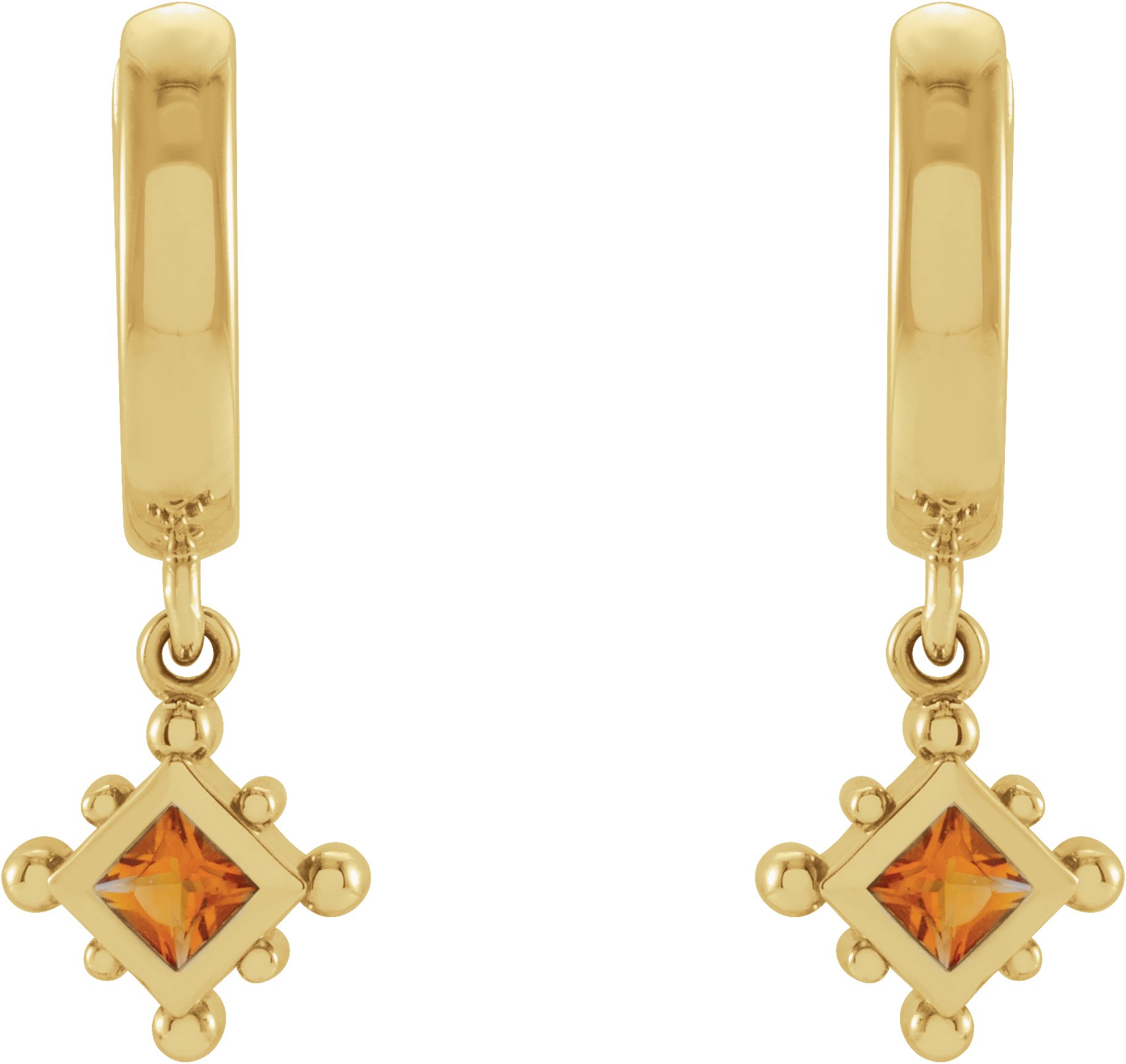 14K Yellow Natural Citrine Beaded Bezel Set Hoop Earrings Ref 18069085