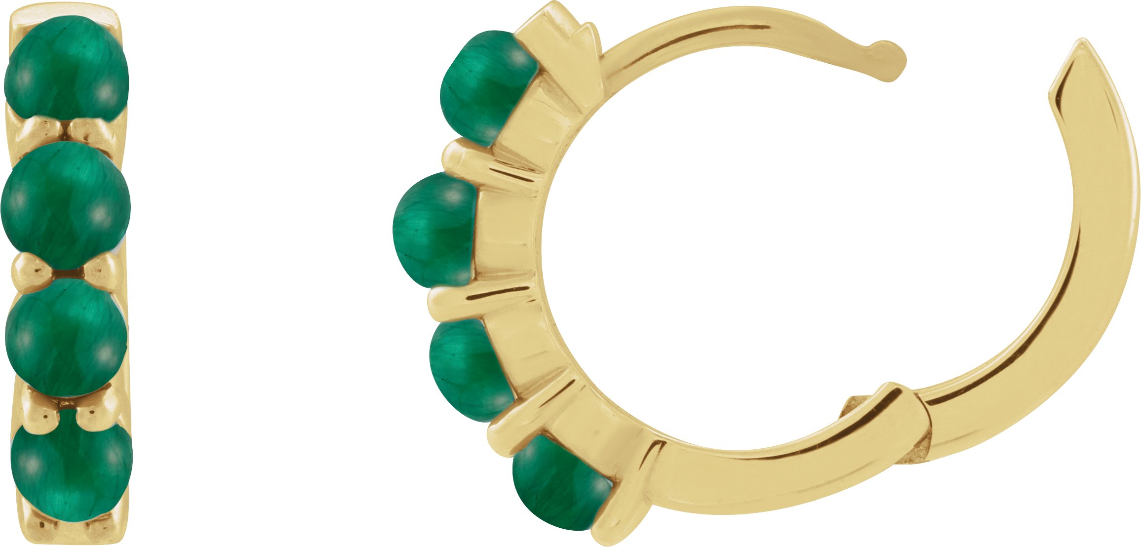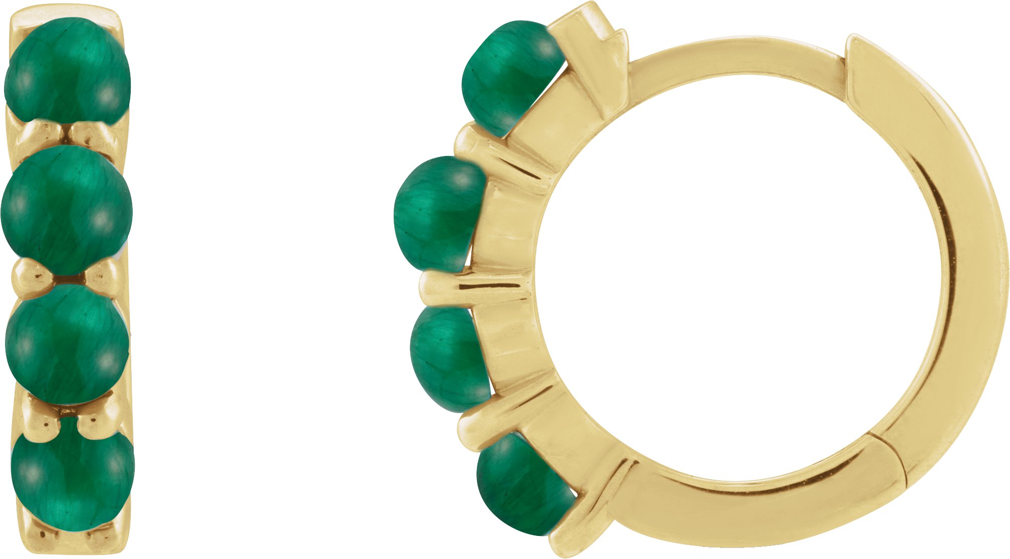 14K Yellow Natural Emerald Cabochon 14.7 mm Huggie Hoop Earring
