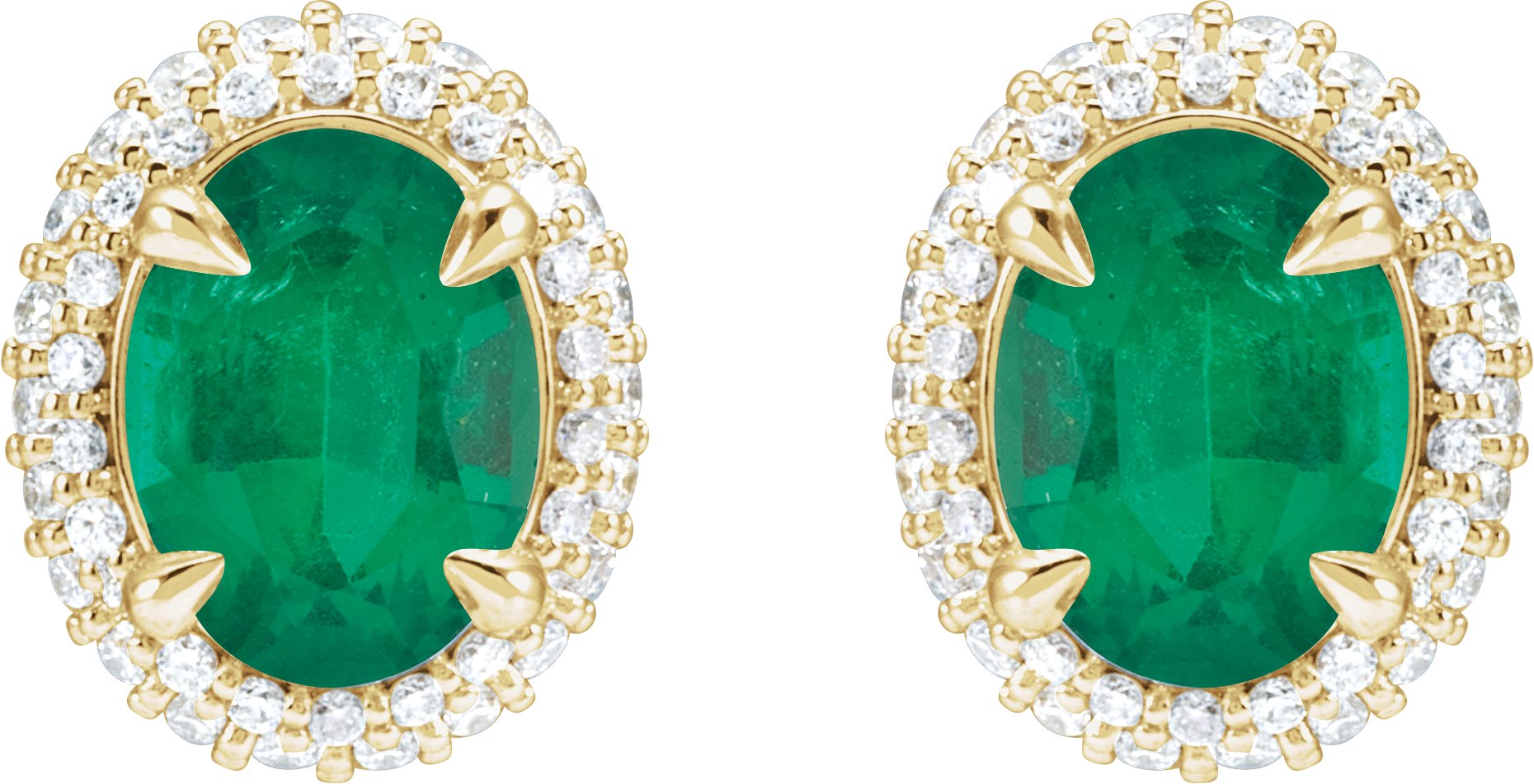 Description: Natural Emerald And 1/2 CTW Natural Diamond 4-Claw Prong Pre-Notched Double Halo-Style Earrings