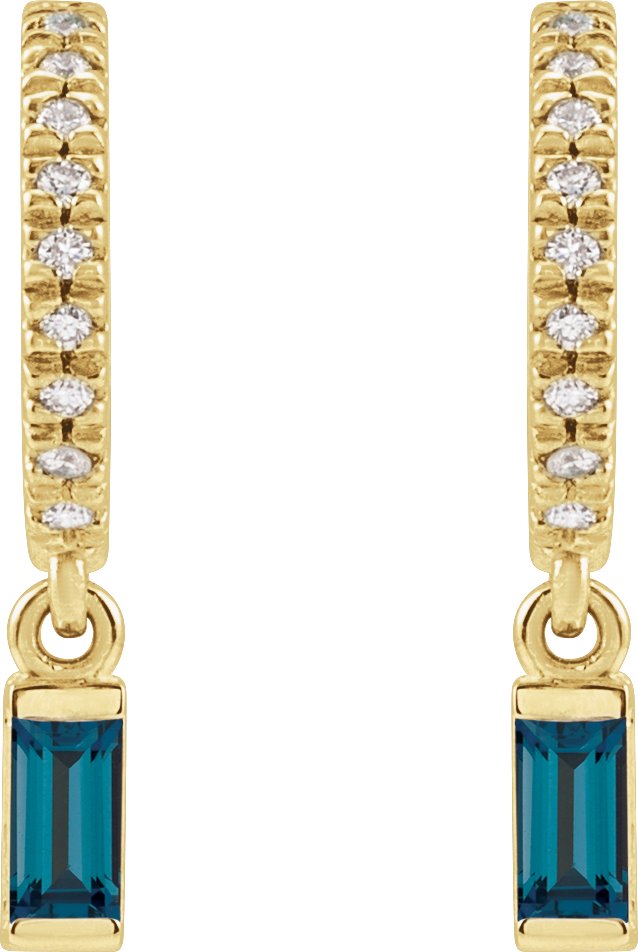 Description: Natural London Blue Topaz And .08 CTW Natural Diamond French-Set Dangle Hoop Earrings
