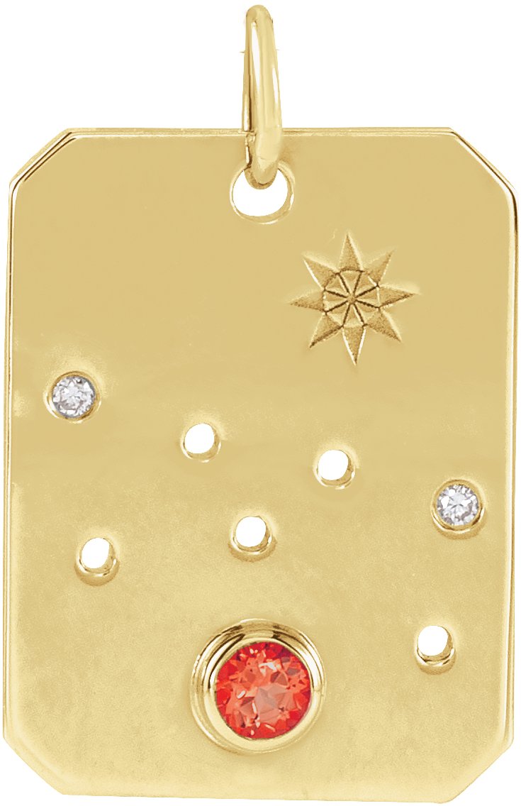Description: Natural Mexican Fire Opal And Natural Diamond Accented Zodiac Constellation Pendant