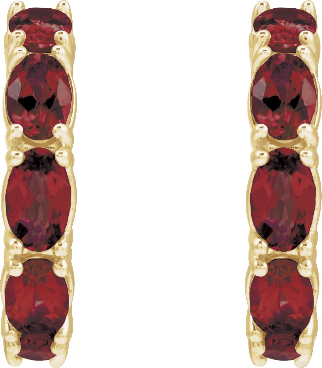 14K Yellow Natural Mozambique Garnet Hoop Earrings