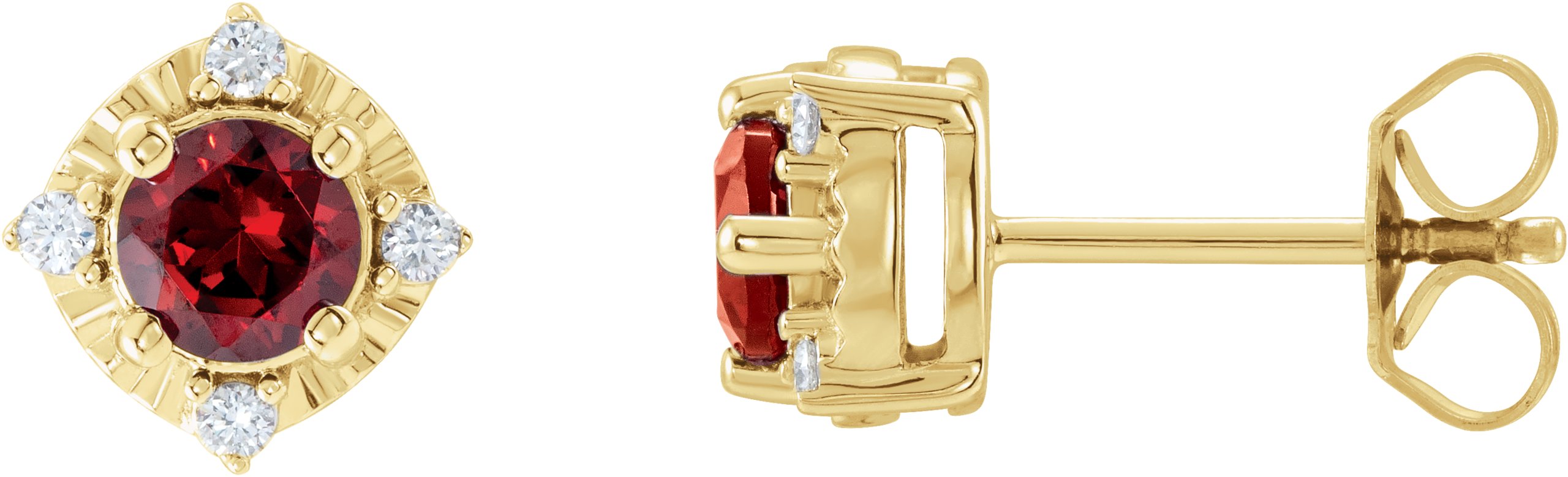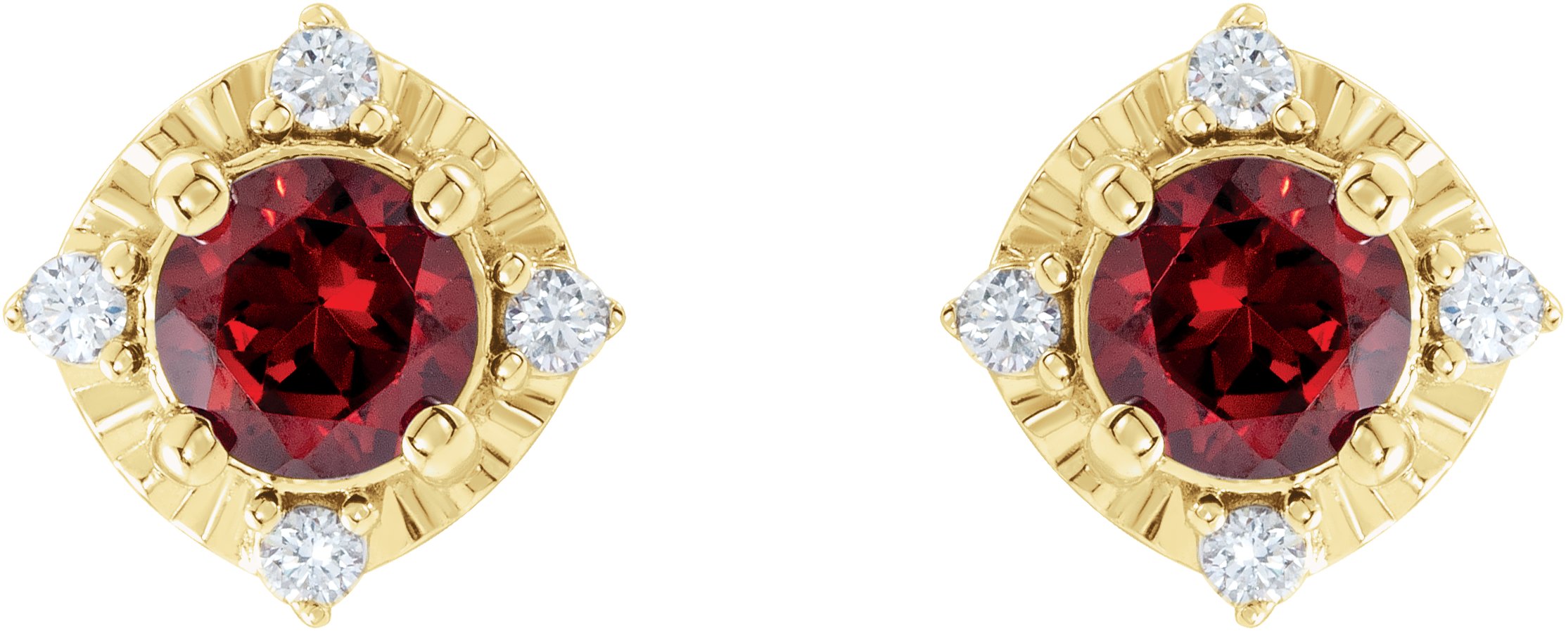 14K Yellow Natural Mozambique Garnet and .08 CTW Natural Diamond Halo Style Earrings Ref 17914924