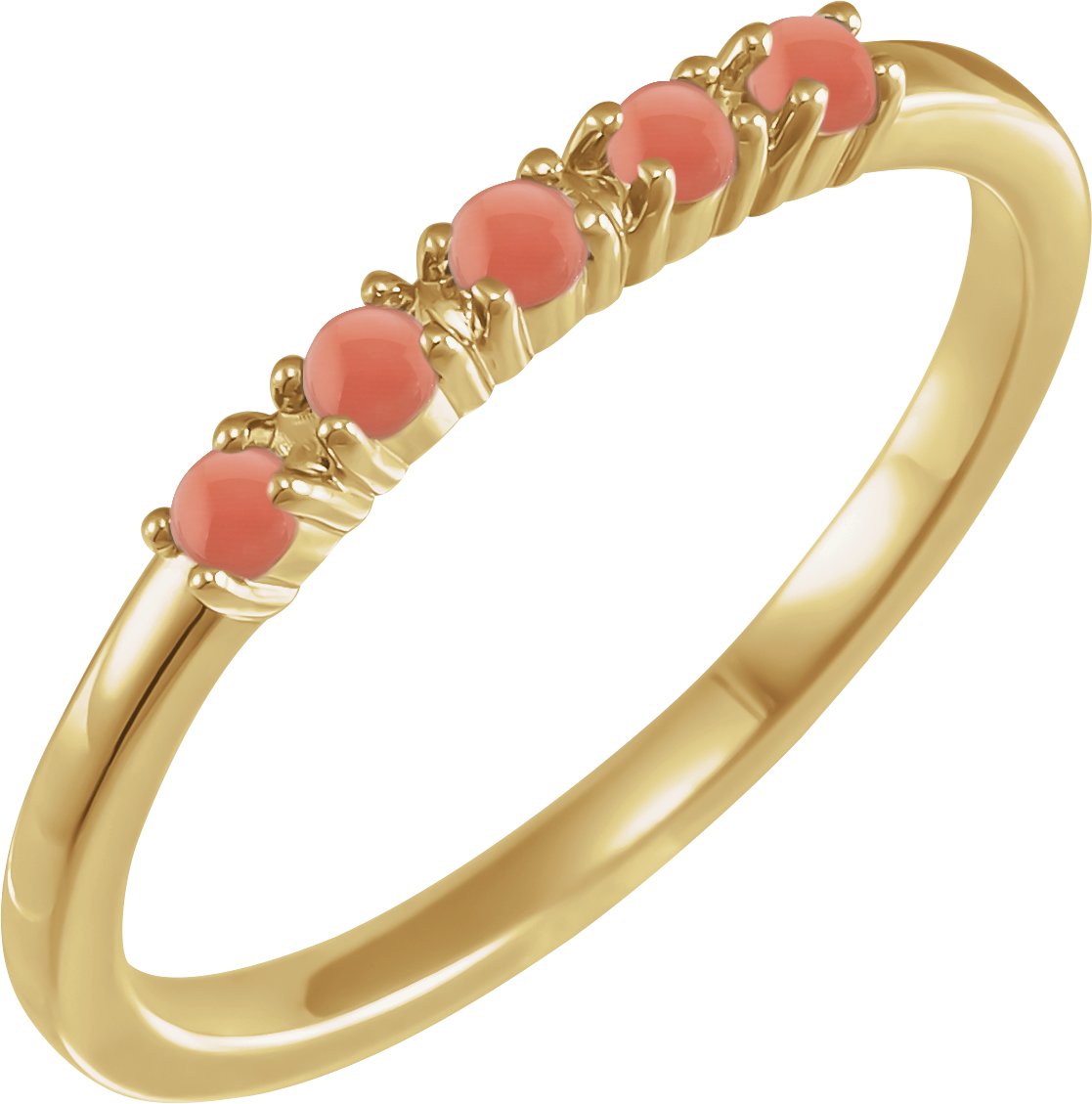 Description: Natural Coral Cabochon Stackable Ring