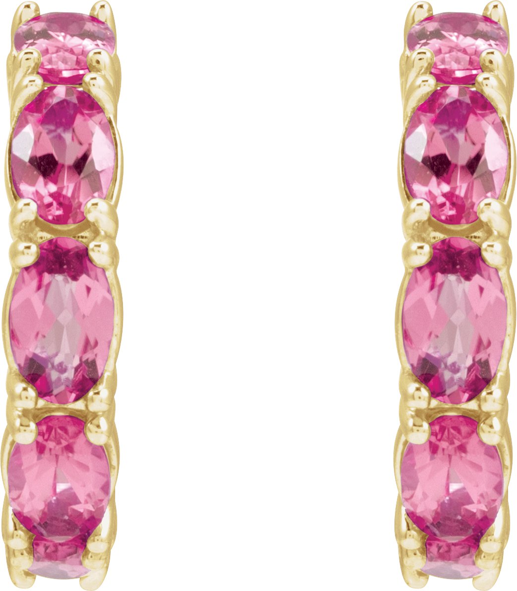 14K Yellow Natural Pink Tourmaline Hoop Earrings