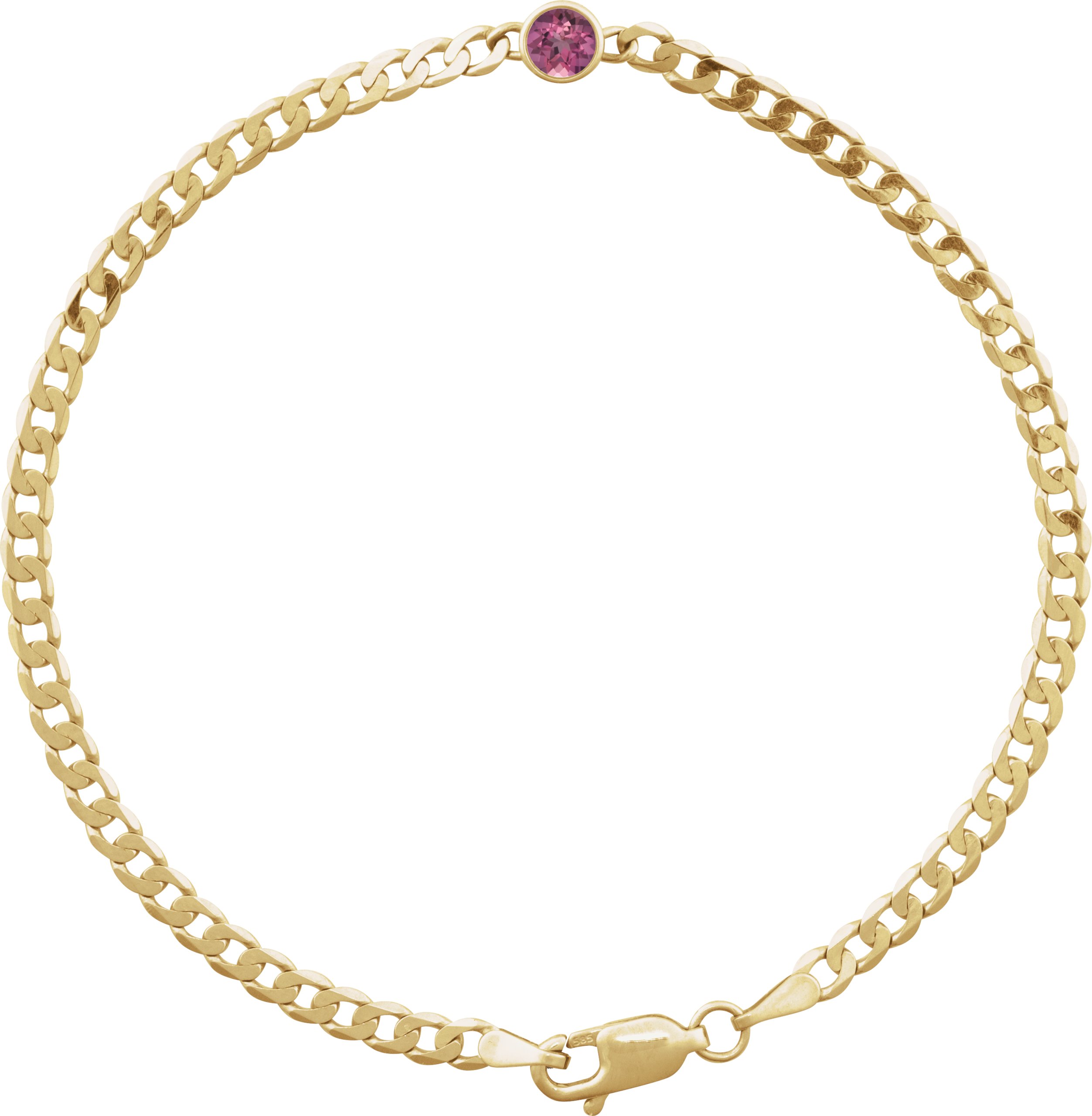 14K Yellow Natural Pink Tourmaline Link 7" Bracelet
