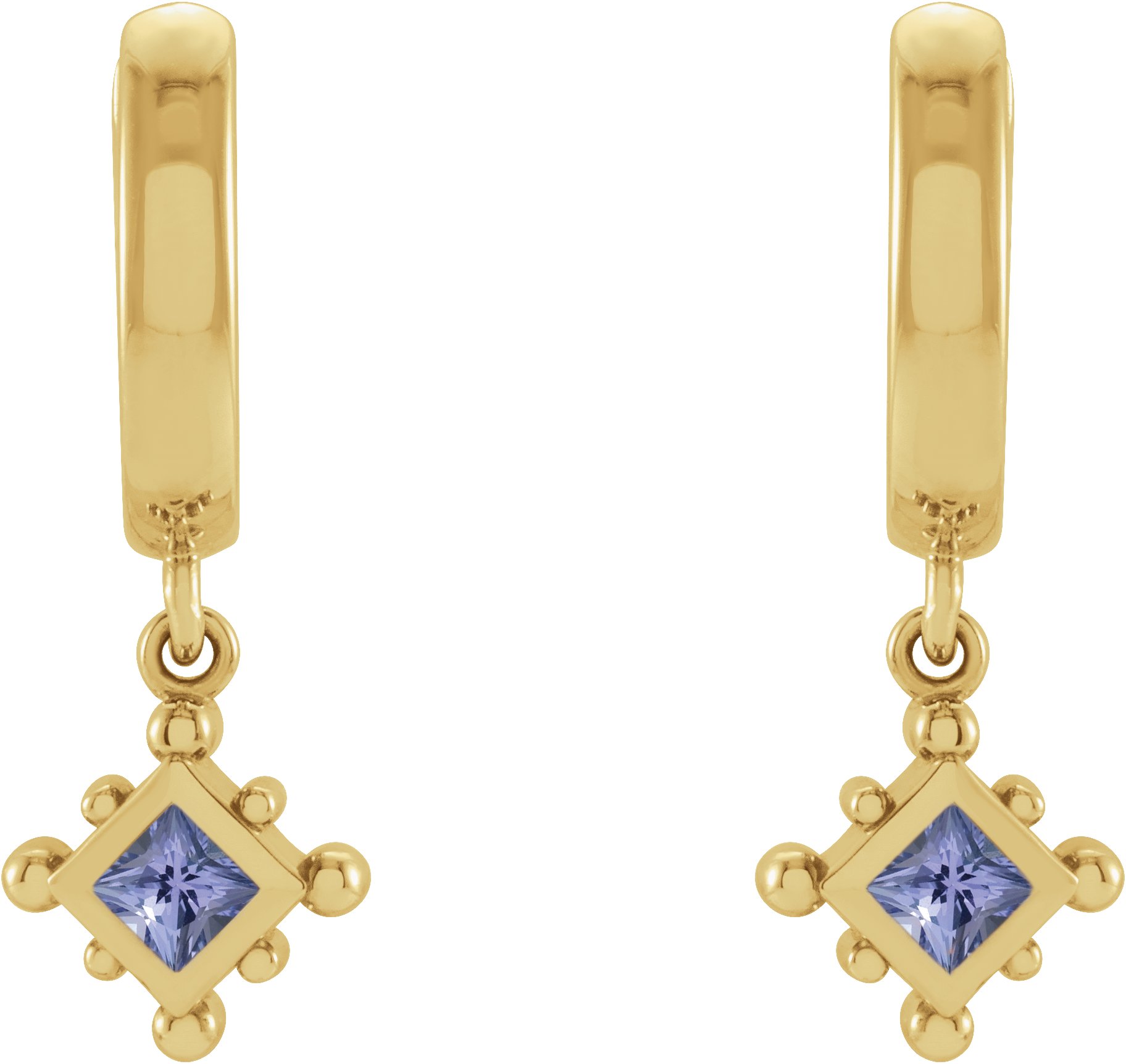 14K Yellow Natural Tanzanite Beaded Bezel Set Hoop Earrings Ref 18069084