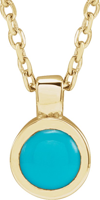 14K Yellow Natural Turquoise Bezel-Set 16-18" Necklace