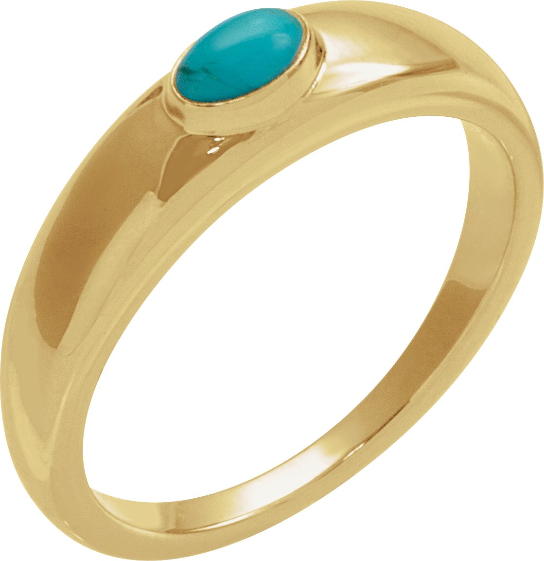 14K Yellow Natural Turquoise Cabochon Dome Ring