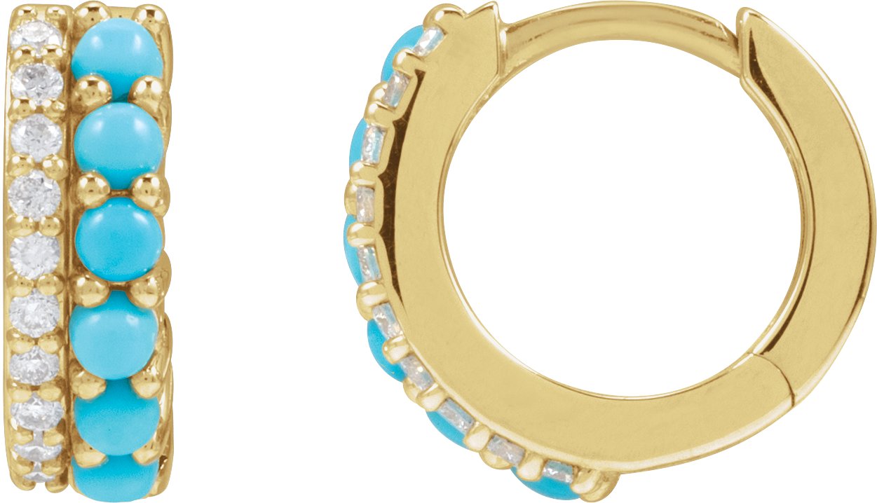 14K Yellow Natural Turquoise & 1/8 CTW Natural Diamond Huggie Hoop Earrings